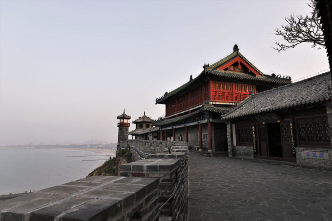 蓬莱阁坐落在城北濒海的丹崖山巅,与黄鹤楼、岳阳楼、滕王阁并称“中国四大名楼”。她拔海而起,与浩淼的碧水相映,云烟缭绕,构成一幅“仙阁凌空”的美丽画卷。