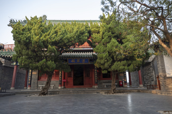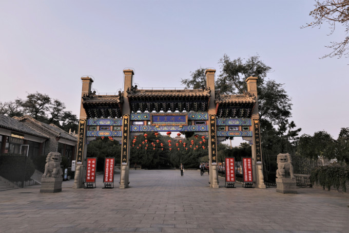 过丹崖仙境牌坊就到了显灵门。正门上有显灵石刻匾。显灵门是天后宫的宫门。天后宫里供奉的是海神娘娘,过去渔民最崇敬的就是海神娘娘,常来这里祈祷海神娘娘保佑出海平安无事。