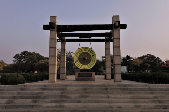 蓬莱广场的世界和平锣,中国唯一的一个和平锣的复制品放在了这里!