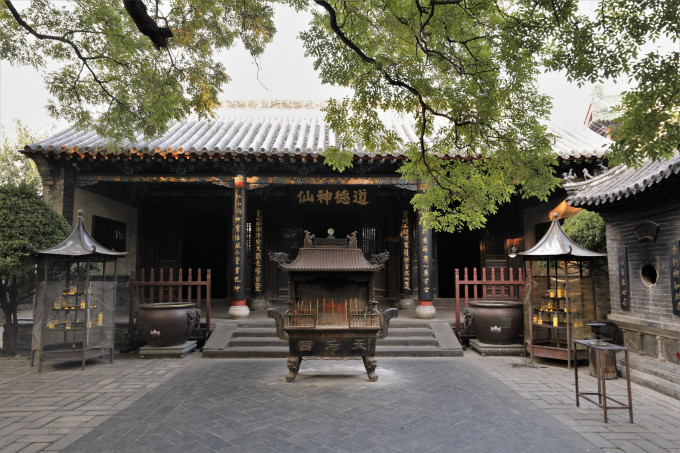 这是天后宫。正中供奉的是天后娘娘,她在福建和台湾一带被称为“妈祖”,她的俗名叫做林默,福建莆田人,据说她刚刚被生下来的时候不会哭,所以她父母便给她取了个名字叫林默娘,她非常的聪明,五岁时就会诵经,十二岁时对海事感应非常灵验,于是她就在海边经常帮助渔民度过了一次又一次的海难,不幸的是她二十八岁那一年在海上遇难了,人们为了纪念她,就在海边建起了供奉她的庙宇。据说她非常的灵验,有求必应,所以这里是整个蓬莱阁香火最旺盛的地方。
