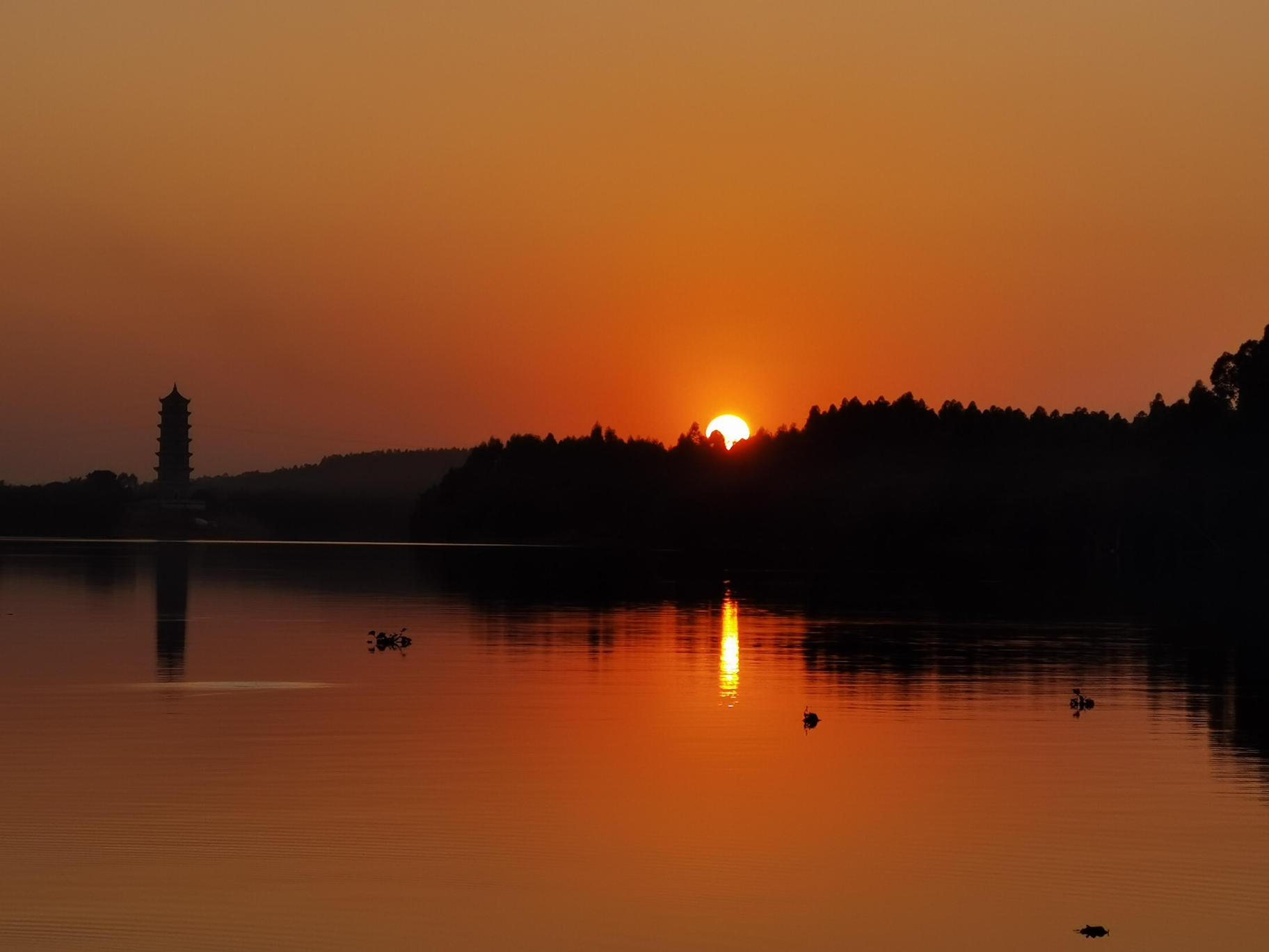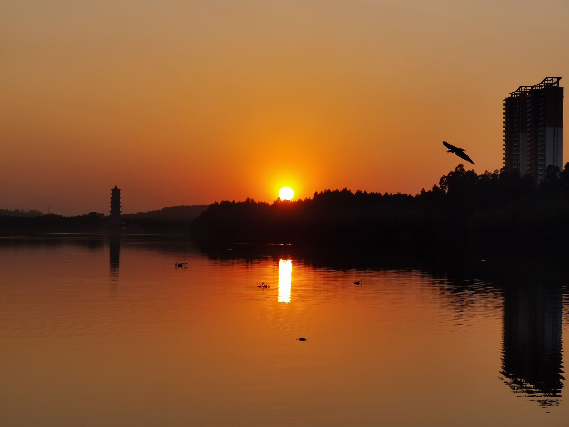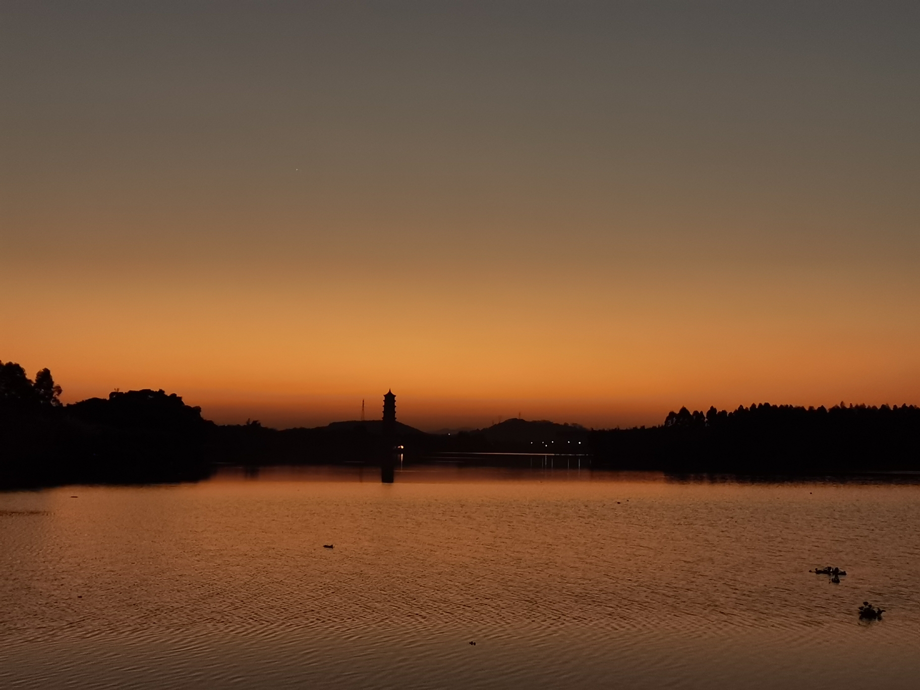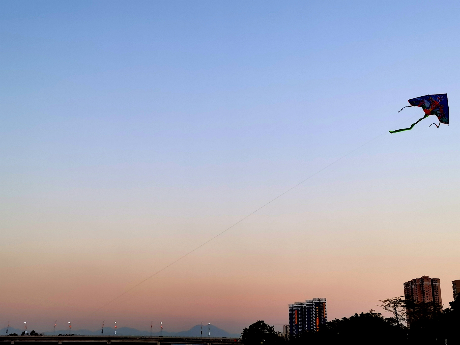 下午5点出发西枝江公园。抬头看看路上的树脂,看着小孩子放风筝等待夜幕降临…