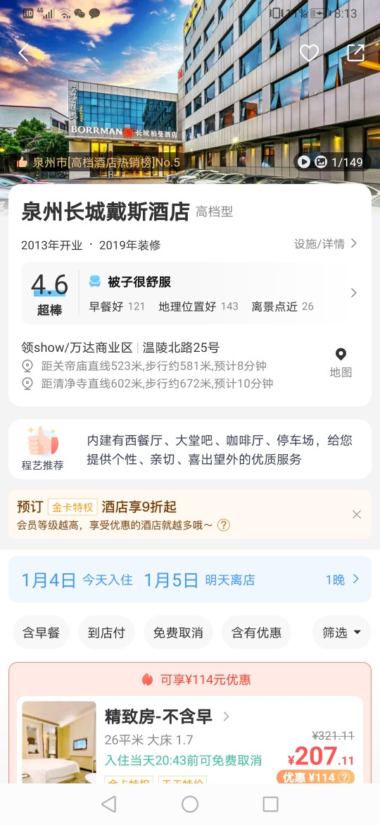 泉州不算很大,景点也很集中,基本都在鲤城区,住在西街附近是最方便的。但我这次住的是“泉州长城戴斯酒店”,距离关岳庙较近,距离西街有大约30分钟的步行距离,非常适合像我这种喜欢吃完东西后运动运动,走一走的小伙伴。干净整洁价格也很便宜。