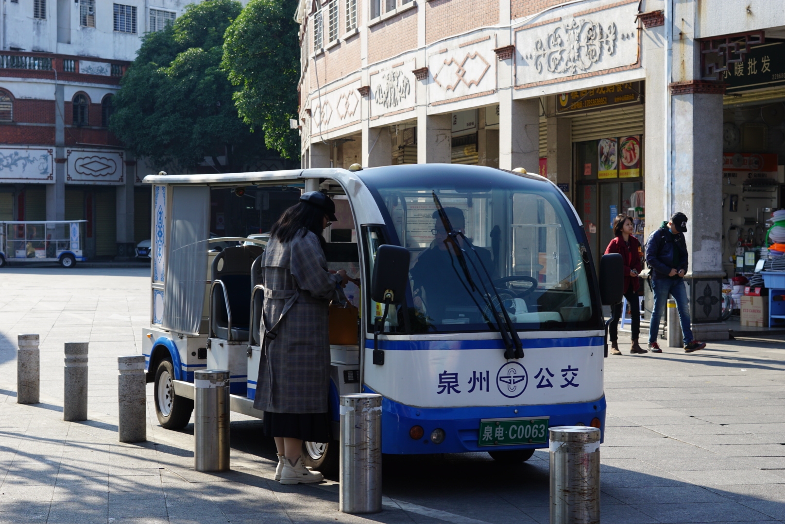 泉州满大街都有共享电动车,不过因为泉州很多小巷子,路窄人多,如果驾驶技术不过关,还是坐公共交通比较好。泉州有普通的无人售票公交车,可以投币,也可以微信关注“乘车码”小程序扫码付款。另外,泉州老城区内有特有的“小白车”,只需2元,路上招手即停,告诉司机目的地就好,不过范围仅限老城区内。