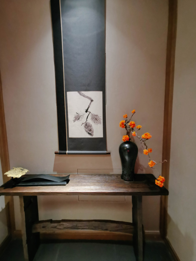 我下榻的松区1,入口玄关处的挂着《松树图》,东方的美学扑面而来。