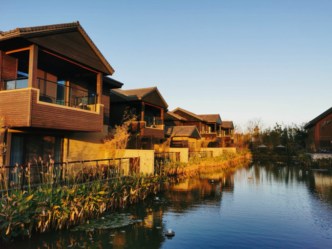 从酒店整体布局来看,全是独栋的唐风建筑别墅,私有的露天温泉,或远眺庭园。独具匠心的“一湖”,“一亭”,“一岛”,“”二泉”,“四桥”人文景观。无论清晨还是黄昏,总有种静谧之美,住在这里远离尘世且安静…