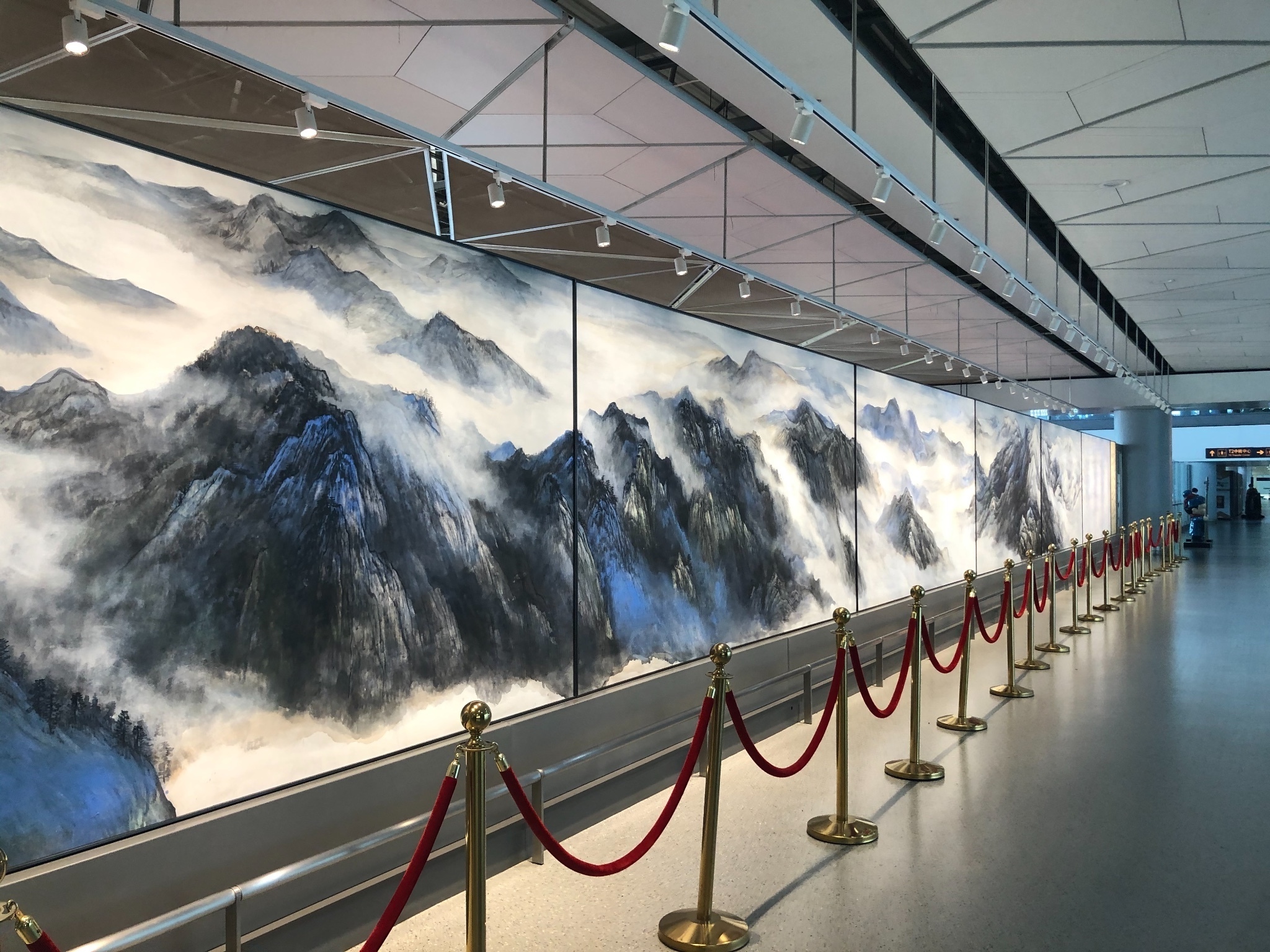 走出咸阳机场的时候,机场内的一幅长卷吸引了我,那是山水纵横、磅礴一泻千里的恢弘画卷。