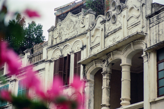 望向酒店对面的老楼,墙上的斑驳诉说着建筑物的历史,表墙的花纹还清晰可见,不知道是不是后来的添加物。
