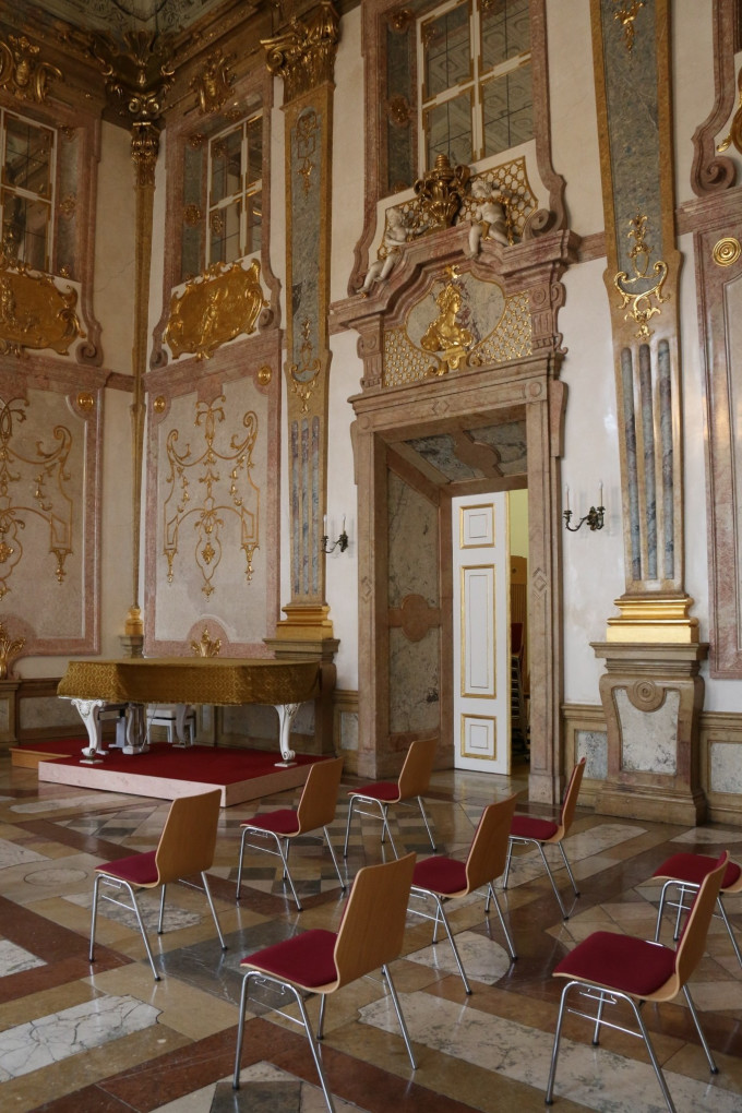The Marble Hall大理石厅曾经是王子大主教的宴会厅,通常被认为是 “世界上最美丽的婚礼厅” 之一。 曾经,利奥波德·莫扎特(Leopold Mozart)和他的孩子沃尔夫冈(Wolfgang)和南纳尔(Nannerl)等人在这里创作音乐。 如今,这里定期举办婚礼,会议和颁奖典礼。大理石厅也是SchlossKonzerteMirabell 音乐会的演出场地。 通往大理石大厅的 Angel Staircase “天使楼梯” 装饰有许多小天使。 如今,米拉贝尔宫是市政机关以及萨尔茨堡市长的办公所在地。