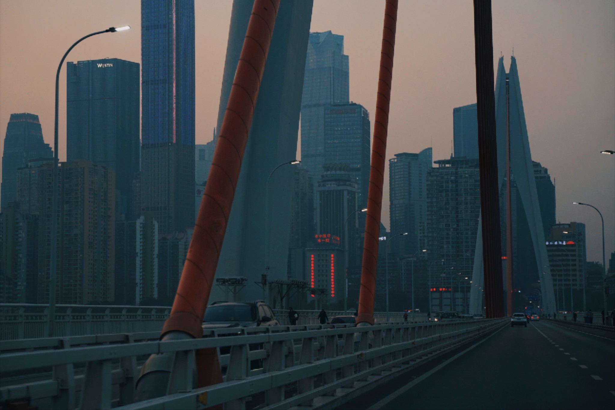 我们是下午到达重庆的,刚好是夕阳的时分,天气晴朗的日子里自驾让人心情大好。