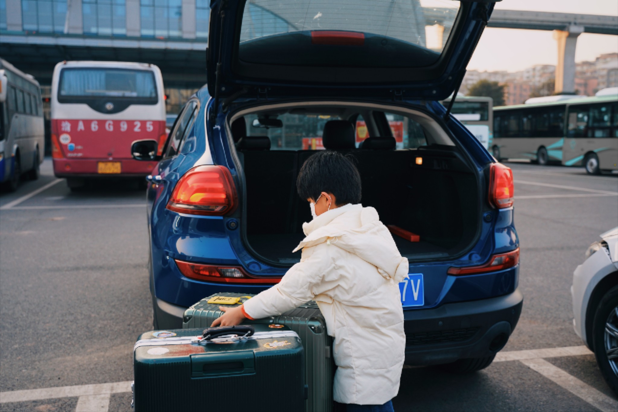 虽然游玩的日子不算长,但是毕竟带娃,行李还是挺多的,所以咱们租了一个五座的SUV,空间挺大的,尾箱可以放置咱们随行的两个28寸大箱子,省事!