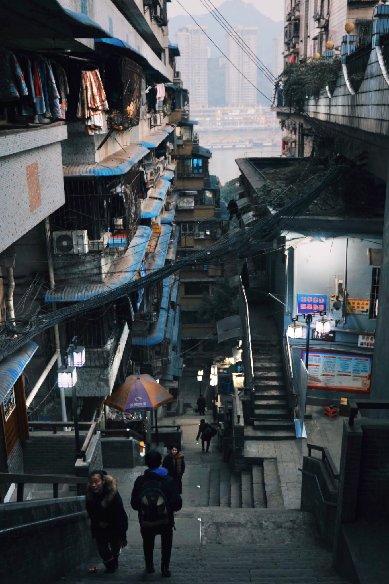 但褪去网红气息,其实这里真的尤其的“重庆味”,这直插地底般的楼梯和分不清楼层的楼房,真的是很科幻,我内心有个特别直白的感叹:啊,这路看着真累。哈哈哈哈哈哈哈哈,想想要是每天要步行这一段路,那应该运动量都很足够了。