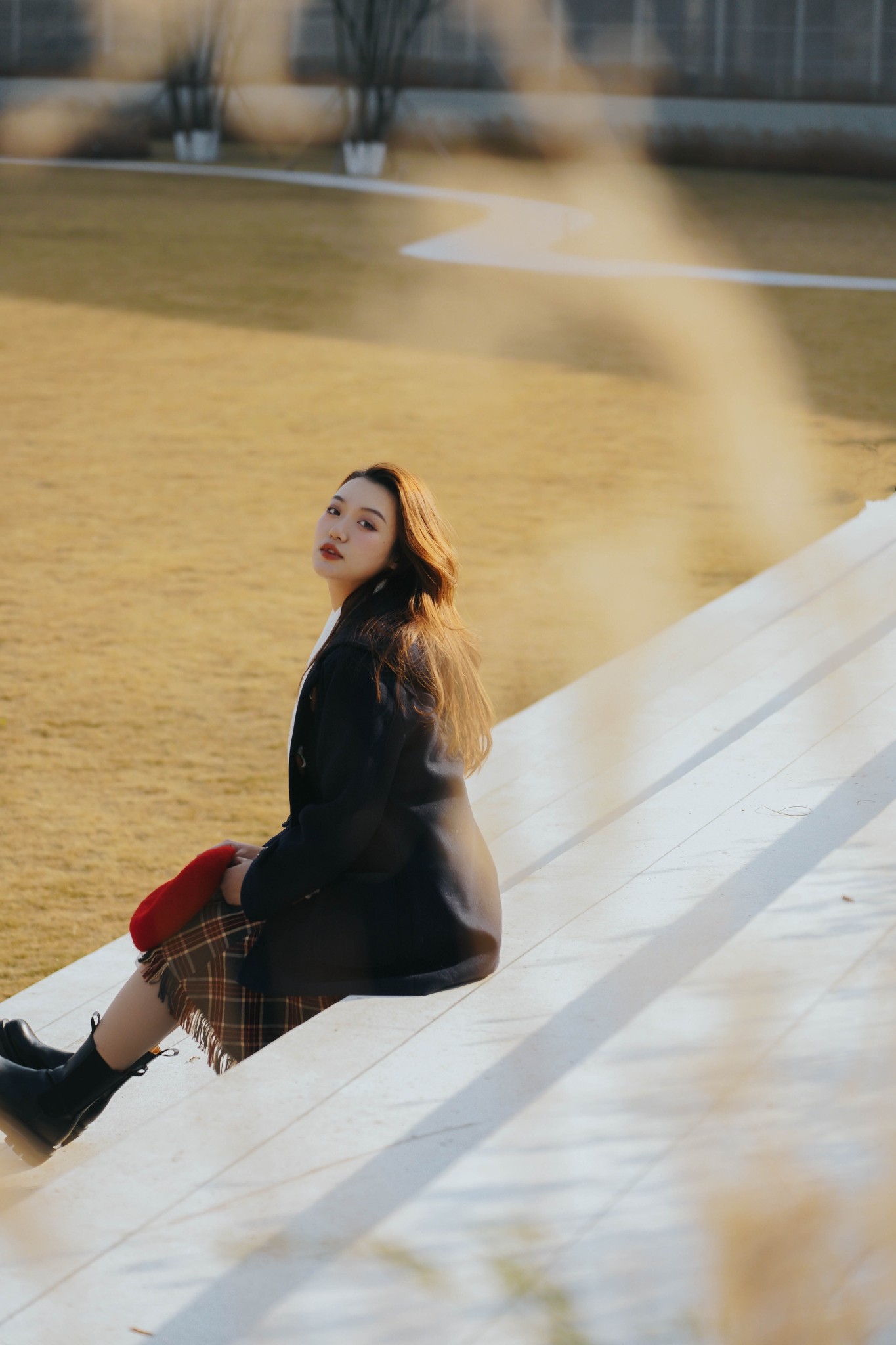 草坪边的阶梯也很适合拍几张人像,用花草做个前景增加了不少梦幻的效果。