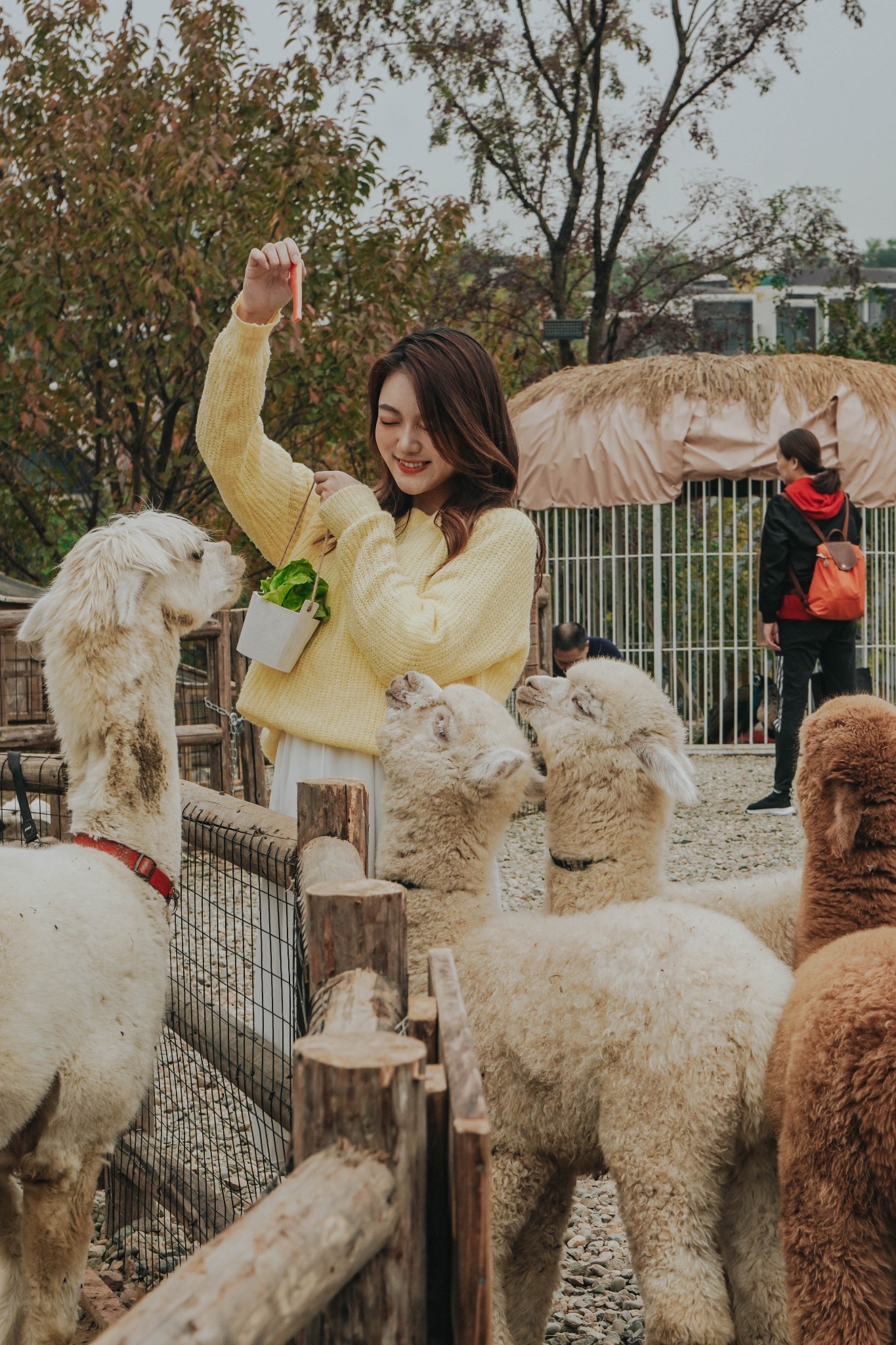 喂食的蔬菜包¥10一桶,除了喂羊驼,还有兔子、小香猪可以互动哦~