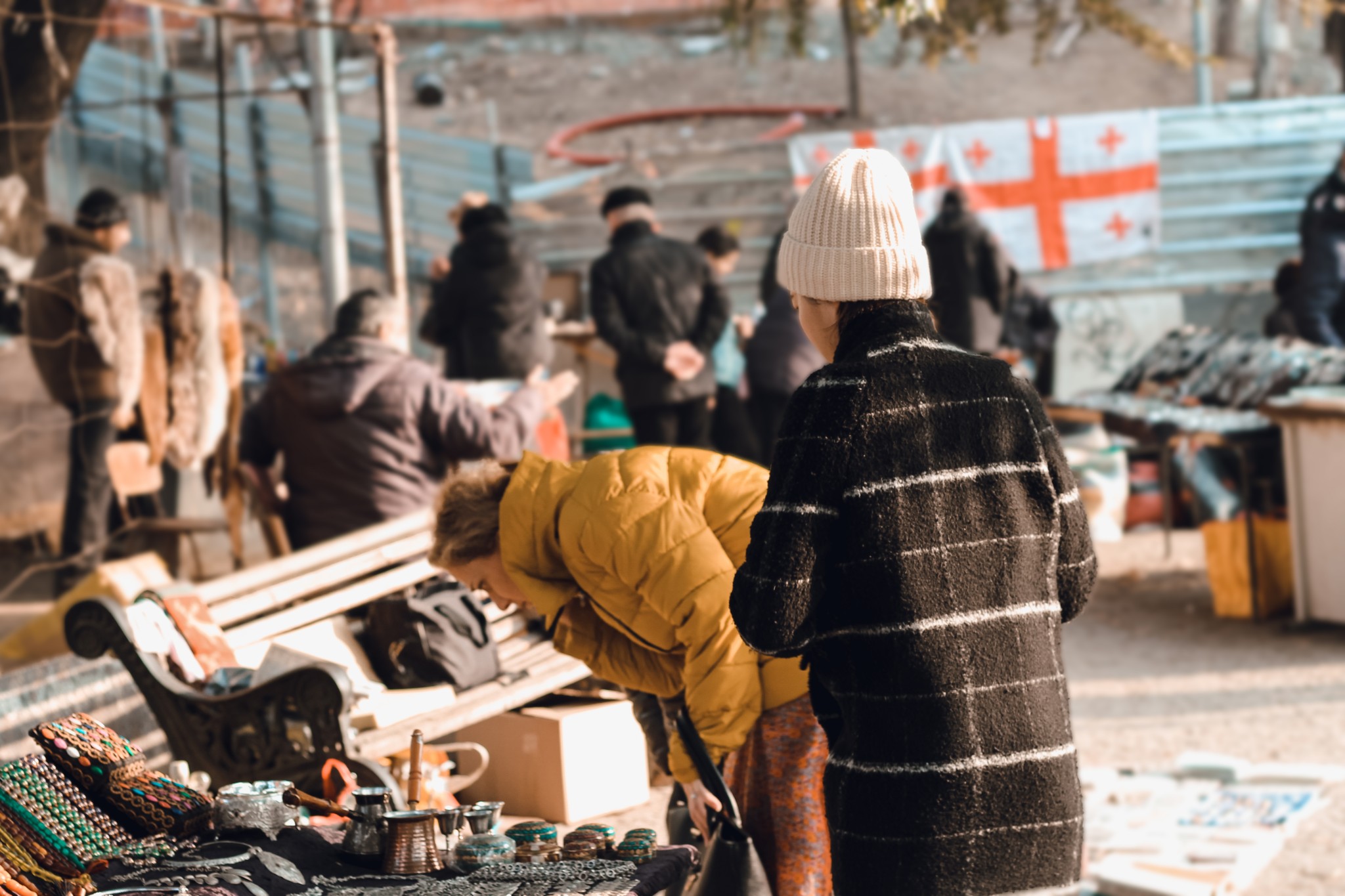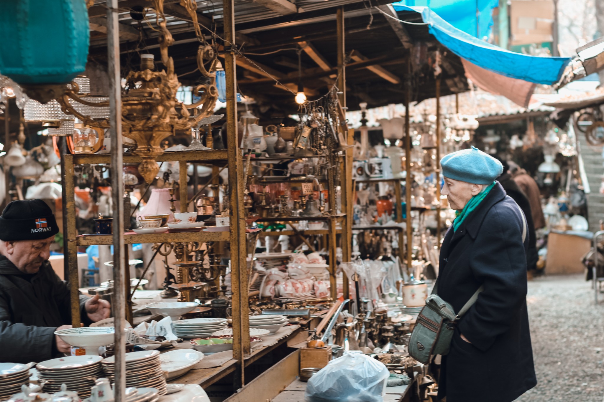 据说跳蚤市场还能觅寻到前苏联的旧物。苏联解体后,穷困的第比利斯人民为了贴补家用,拿出家里的二手货变卖而自发形成的一个市场,现在也成为当地很有名的景点之一,在地图上搜Dry Bridge Market就行,每天营业,11:00am到5:00pm,下午四点半就差不多开始陆续收摊儿了。周日是最热闹的,有很多游客和不少当地人前来淘货。