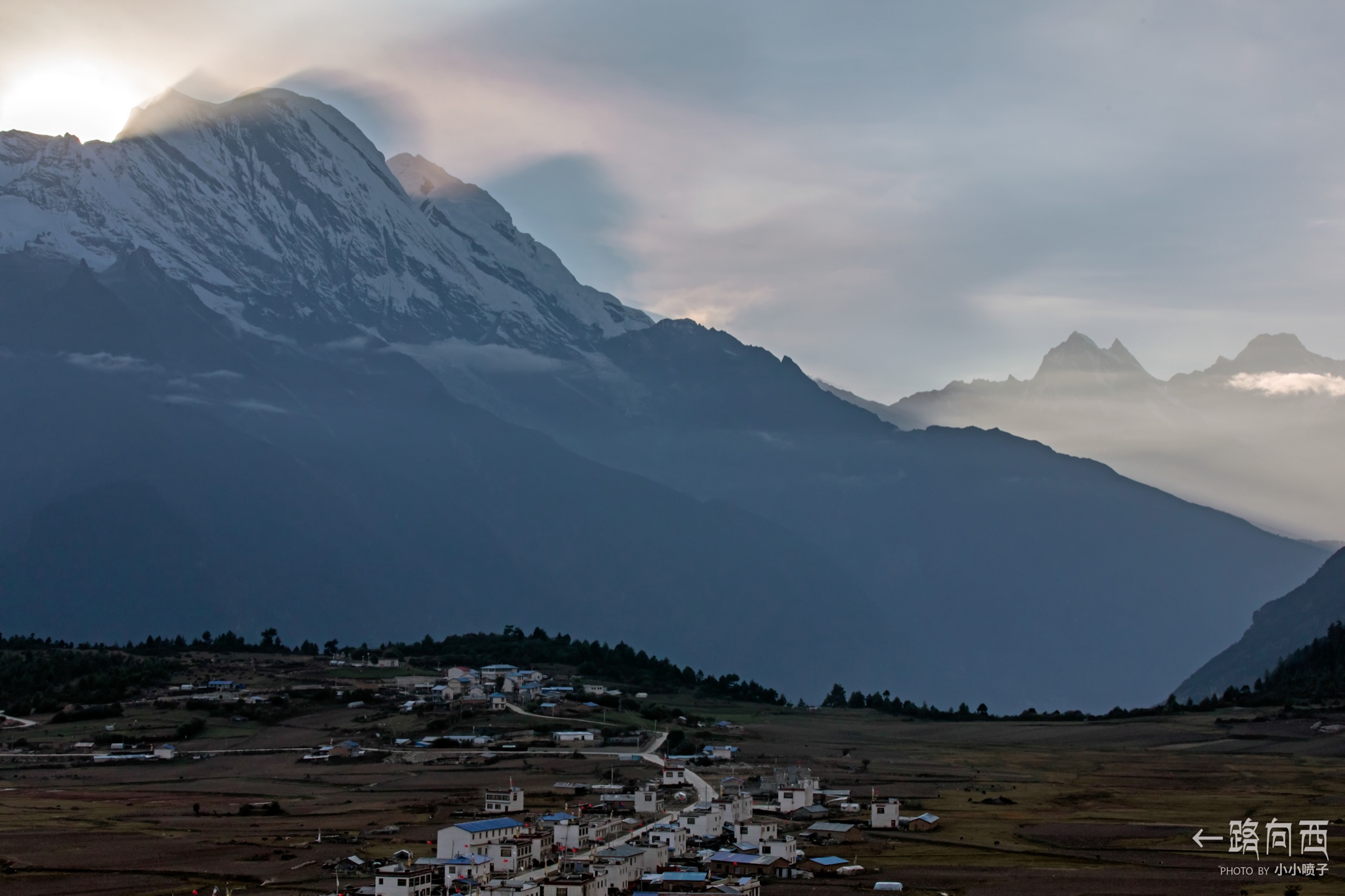 清晨雪山环抱中的吉隆镇,拉开酒店窗帘,四周皆是金山映衬,温暖的色调,彷佛梦境还未苏醒。