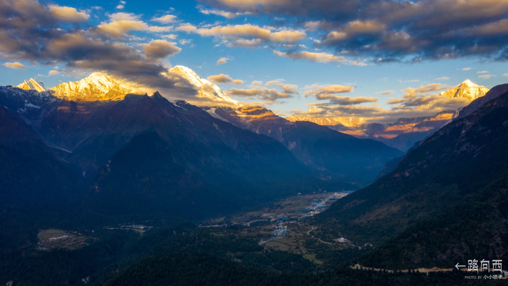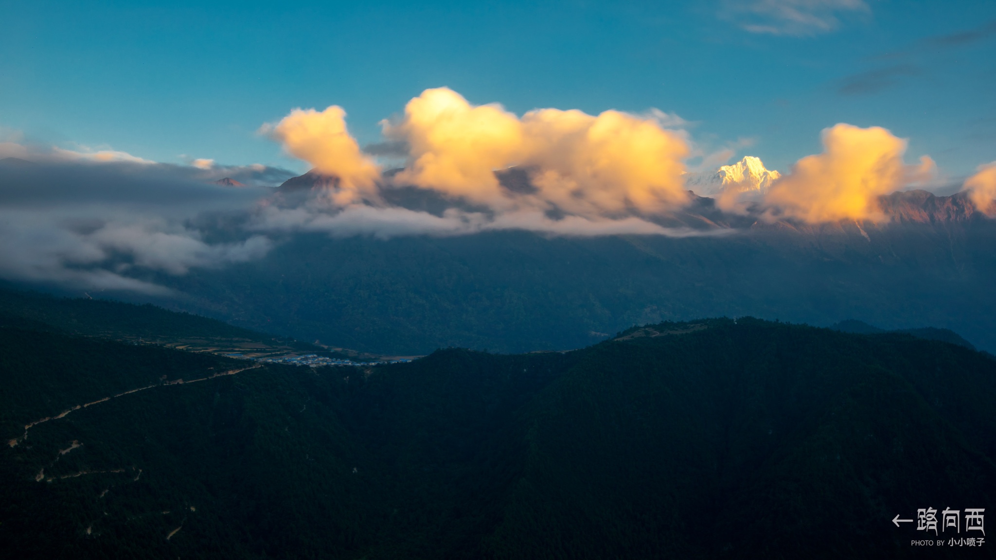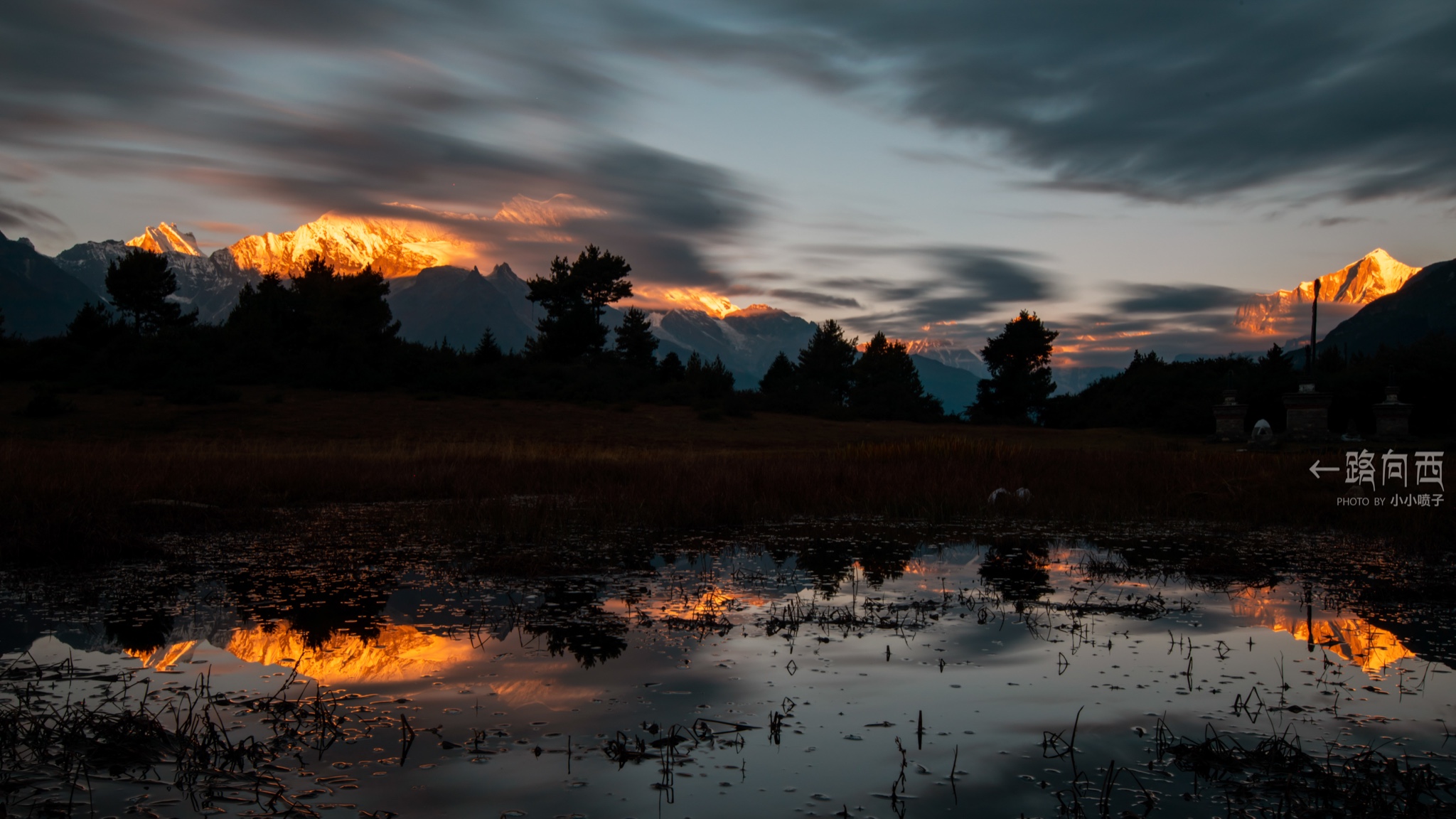 夕阳下,倔强的雪山试图强留住最后一丝暮色,正如晨曦中,山峰争先得到第一缕阳光的照耀一般,最美的时刻总是短暂出现在朝夕光影中。