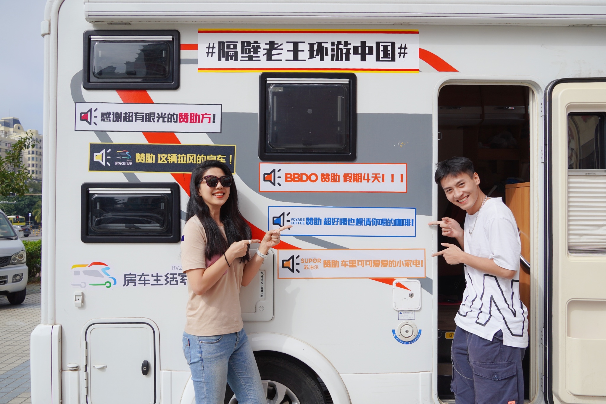 借此,#隔壁老王环游中国第二季-海南站就正式开始~刚好和第一位新朋友,阿里陈伟霆一起展示一下我们的“小广告”版房车,被围观了一路,也因此认识了很多好奇的新朋友,特别棒~