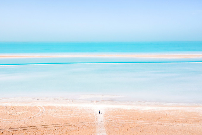 火爆全网的东台吉乃尔湖,“治愈系盐湖”,和其他盐湖的色彩又不一样,东台吉乃尔湖的颜色是淡蓝色,瞬间震撼到我们了,很治愈心灵的色系,在这荒漠戈壁中居然找到了大海的颜色。