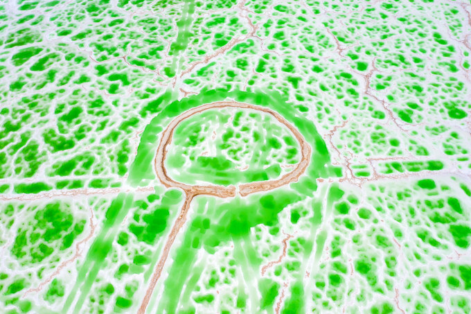 G315上的乌素特水上雅丹地质公园,2018年正式成立的,有着“中国西部的 千岛湖 ”之称。水上雅丹还是从这几年一些银河作品里面发现的,没有想到这么快就成了景区。等了两天,银河没有等到,等到了日出,这两天早晨准时5点爬起来看一眼窗外,第二天等到了朝霞,赶紧冲出去,发现整个景区就我最早,拿出无人机航拍。大家可能不太相信,这个世界上唯一的“水上雅丹”并不是经过漫长岁月自然演化而成的,是由人类“推波助澜”而成。所以才会在这些年才被大众所发现。可以说因为盐湖的大开发,无意中成就了“水上雅丹”,早期这里的鸭湖就只有6平方公里,现在有300平方公里。鸭湖是夹在西台吉乃尔湖和东台吉乃尔湖之间。我们从茫崖方向最先遇到的是西台吉乃尔湖。
