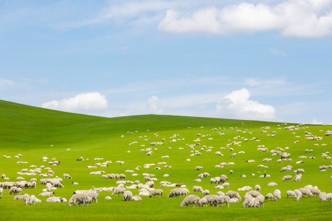 呼伦贝尔有四大神兽,第一种神兽“羊”,草原上随处可见的羊群,一开始让大家看到羊群就兴奋,到后来都觉得看腻了,镜子的想象力太丰富了,说看到这么一大堆羊群就像一团团卫生纸,脑洞大开到我们无法跟上思维。