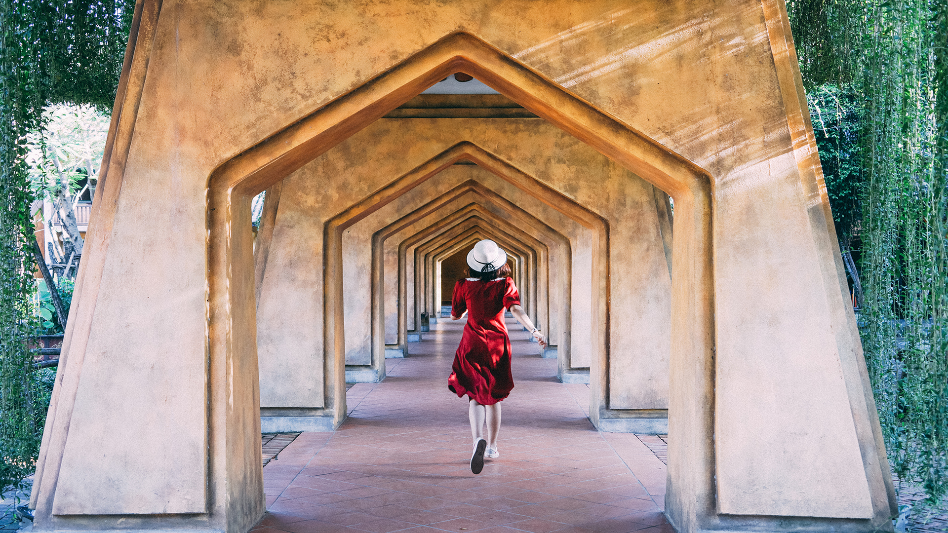 检票后正式进入巴拿山景区,首先穿过会安园林。曲曲折折的长廊与绿植、佛像相互交织,我们差点停不下拍照~