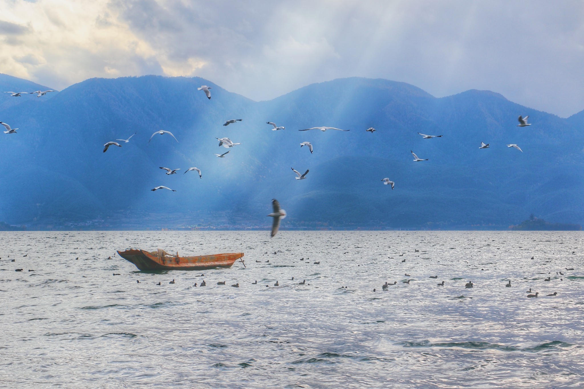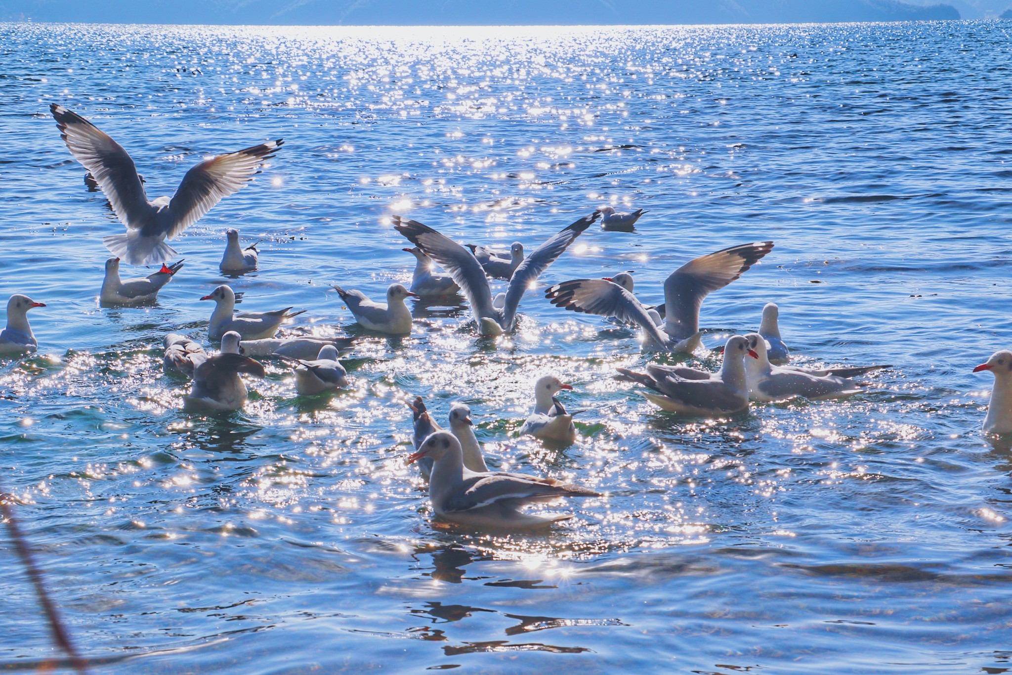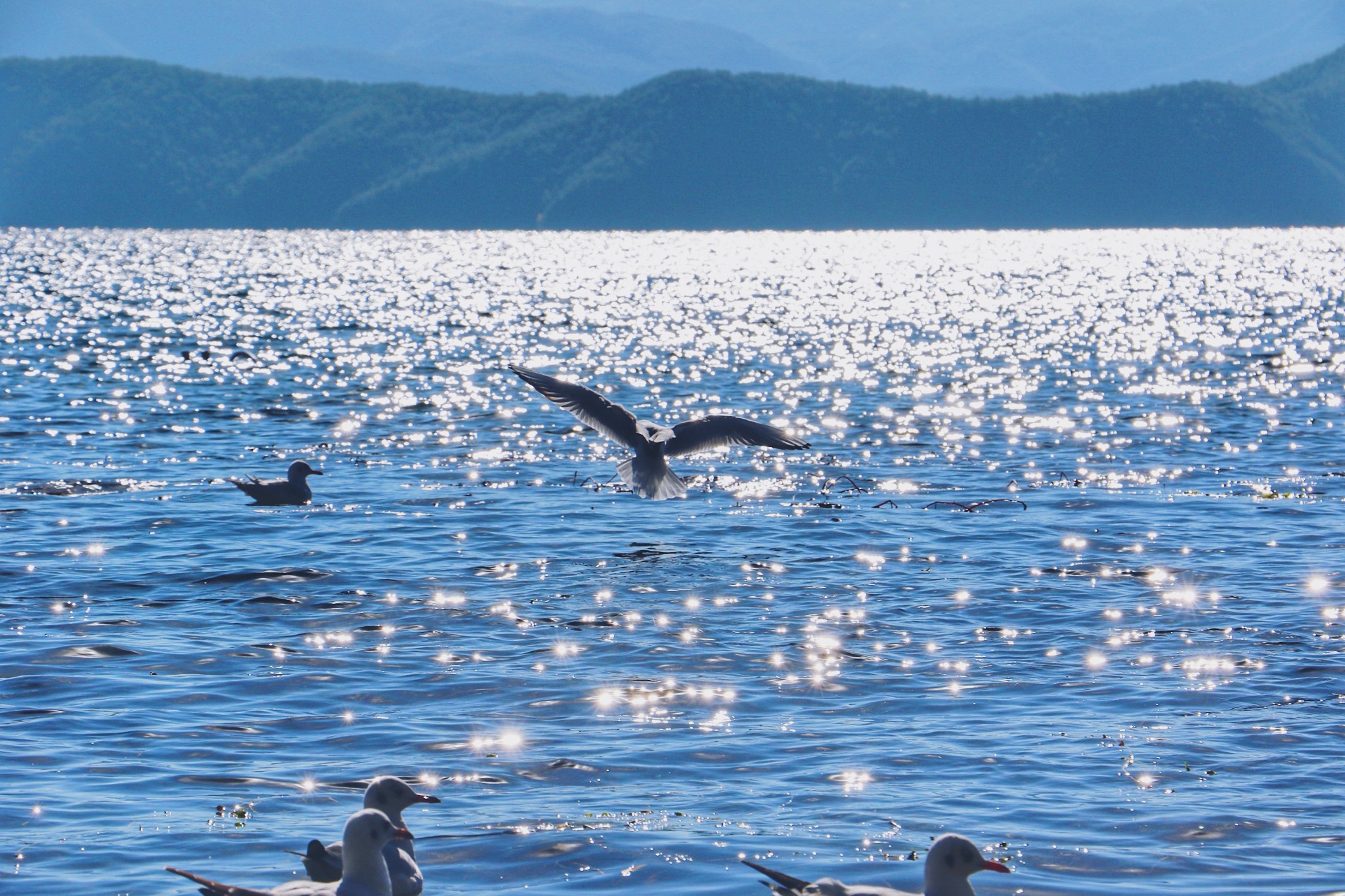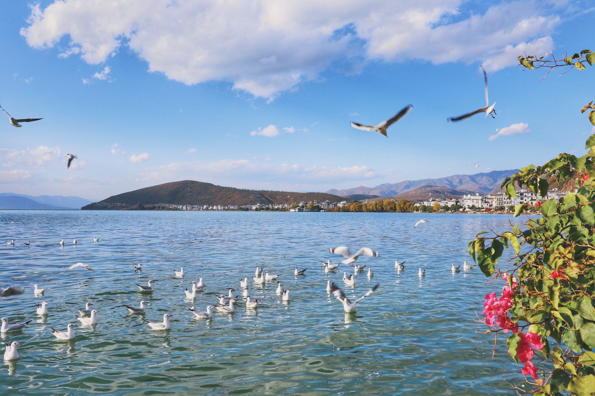 如果想在洱海边喂海鸥,需要提前准备好饼干面包等东西,为了抓拍到下面这张照片,在小普陀停留了二十分钟,等待一个最佳机位。