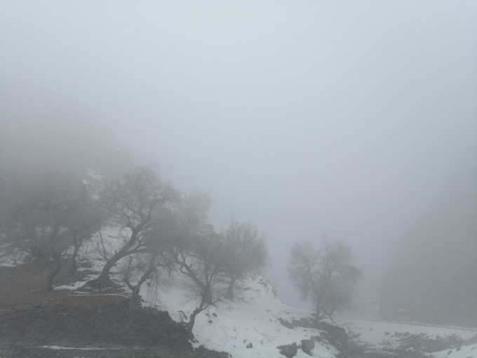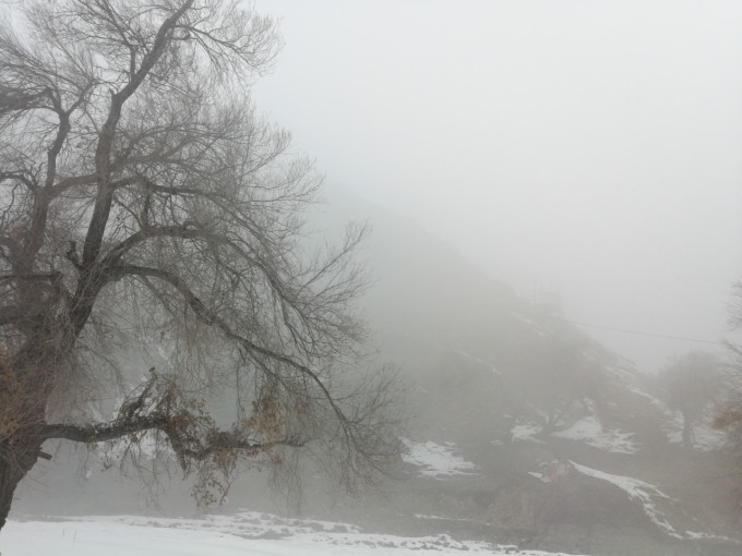 放假第四天,年初三,放假的都是早晨从中午开始,半天时间,驱车哈熊沟,景区大门没人管,随意进出,春寒料峭,路上大雾,
