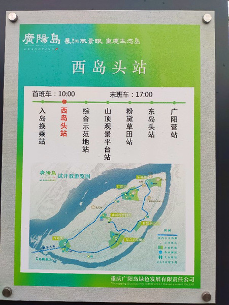 4、广阳岛外接驳站和岛内的定线公交实行滚动发车。岛外发车时间9∶30—16∶30,岛内依次停靠西岛头、综合示范地、东岛头、广阳营站点