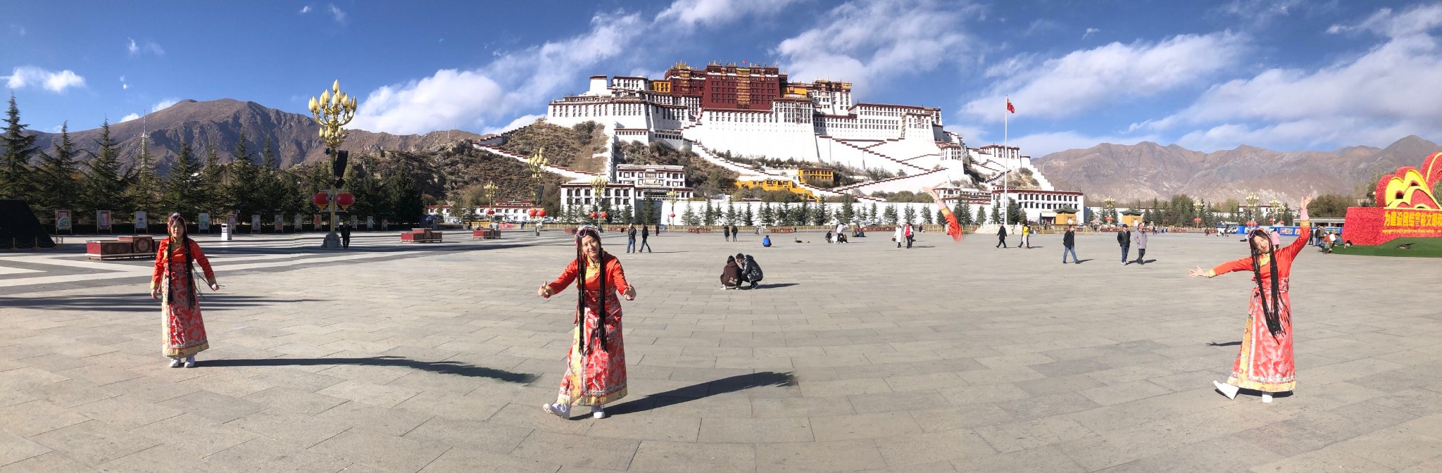 换上藏族服饰,在布达拉宫前跳一支美妙的舞蹈