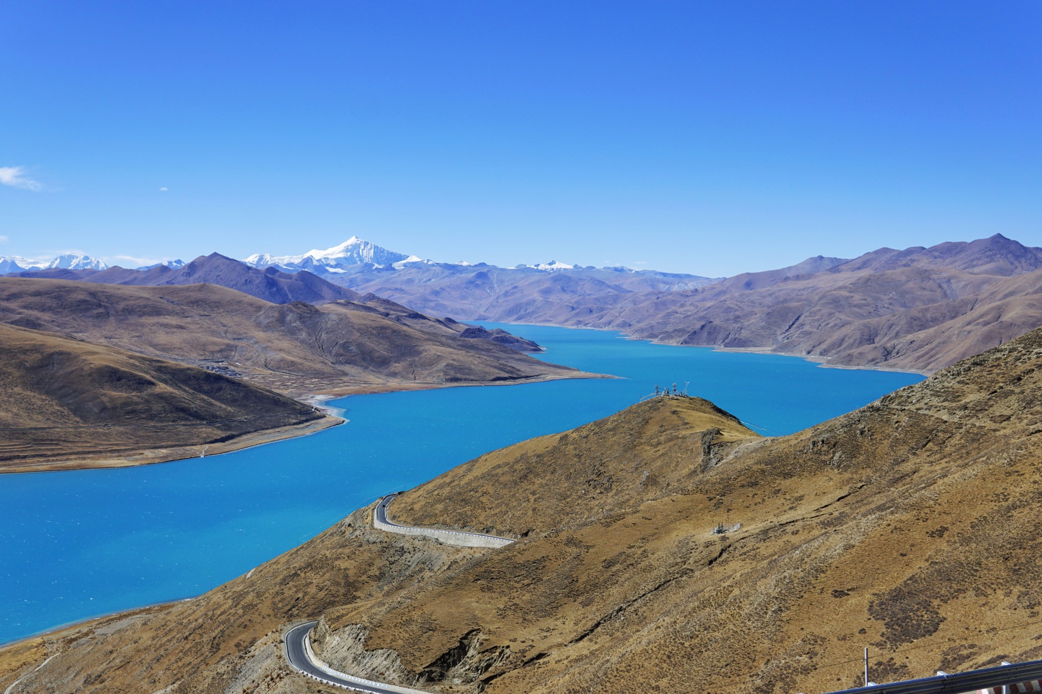 实地探访羊卓雍错,眼睛所见远比图片里震撼,万里无云的天空,蓝到极致的湖面,黄棕色的山脉,再配上远处的雪山,一种美丽、冷静、理智、安详与广阔的感觉跃然心头。