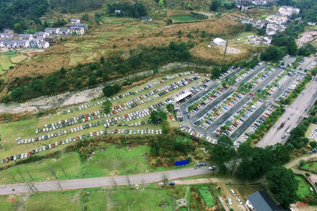 景区的停车场爆满,我们的车都停到了后面的土坡上。