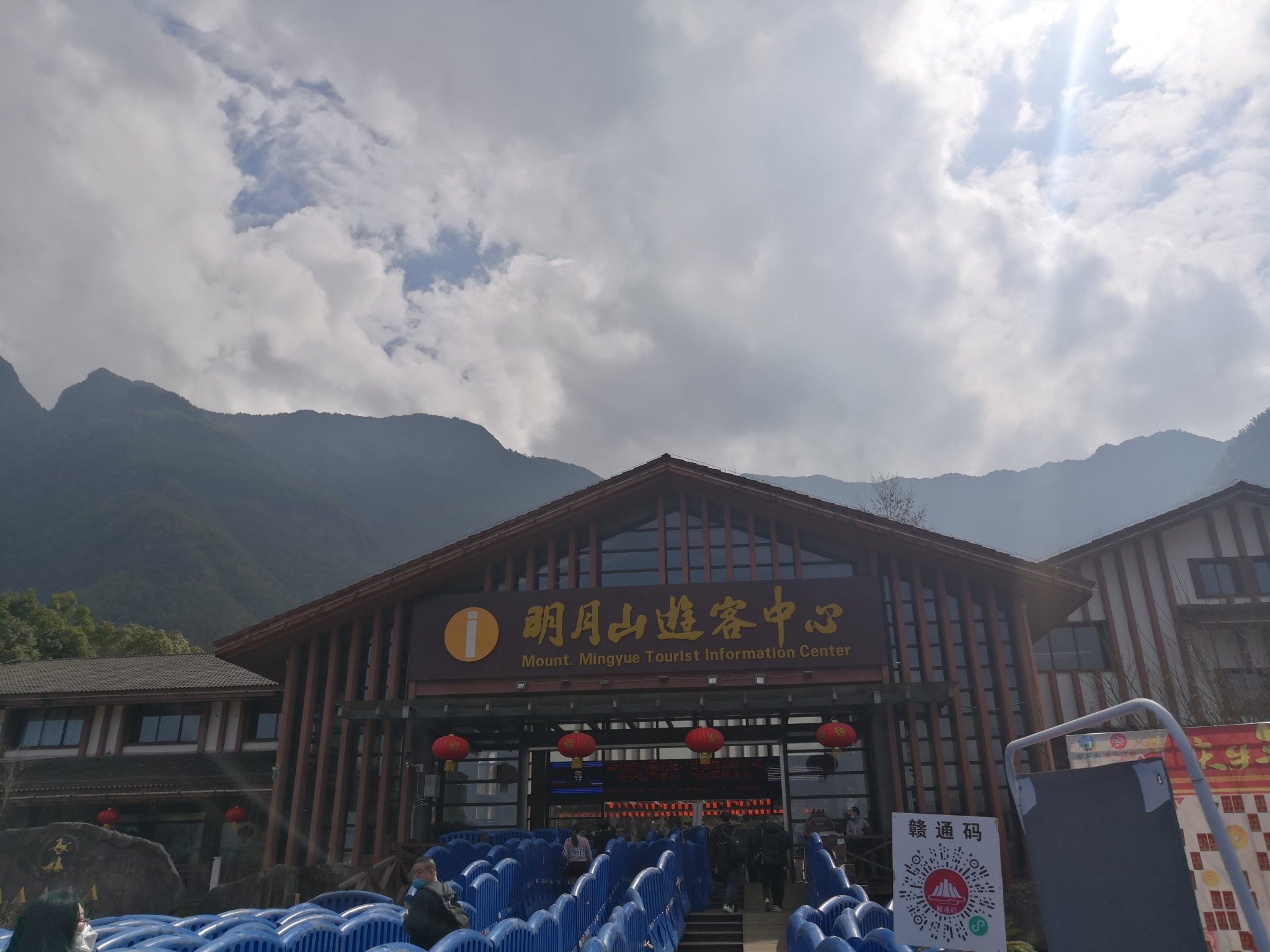 早上08:10出发,一路上都是阴天;11:03抵达明月山景区停车场,此时云开日现,蓝天白云。我们一度十分高兴,可是短暂的晴空也就持续了十来分钟。