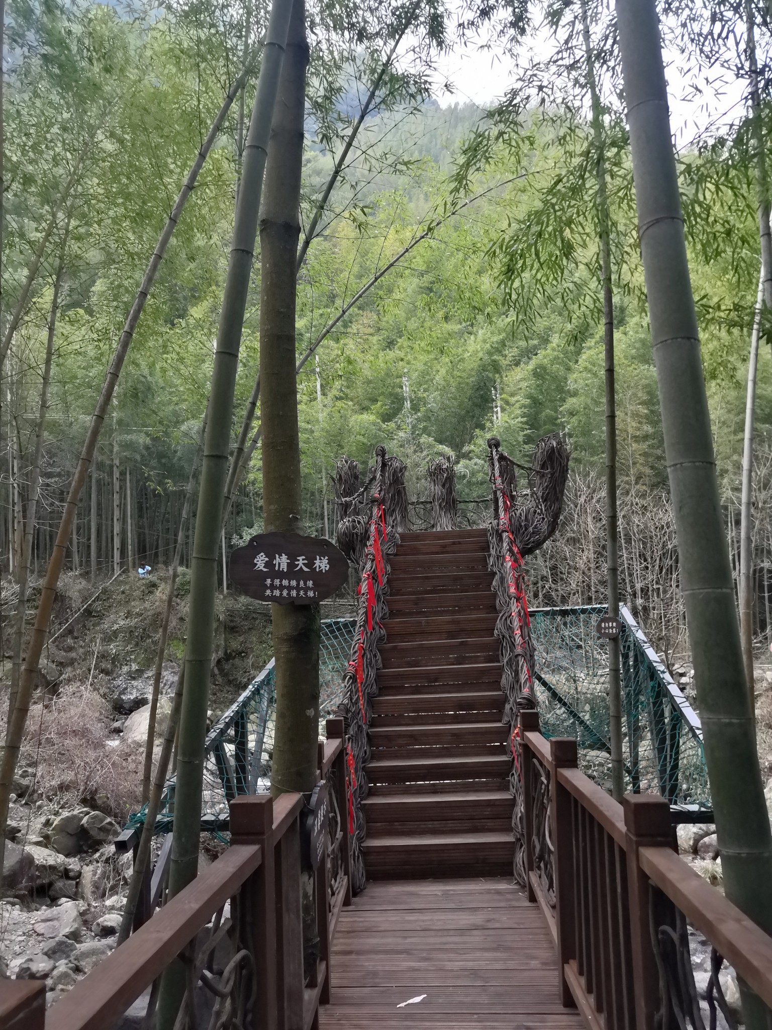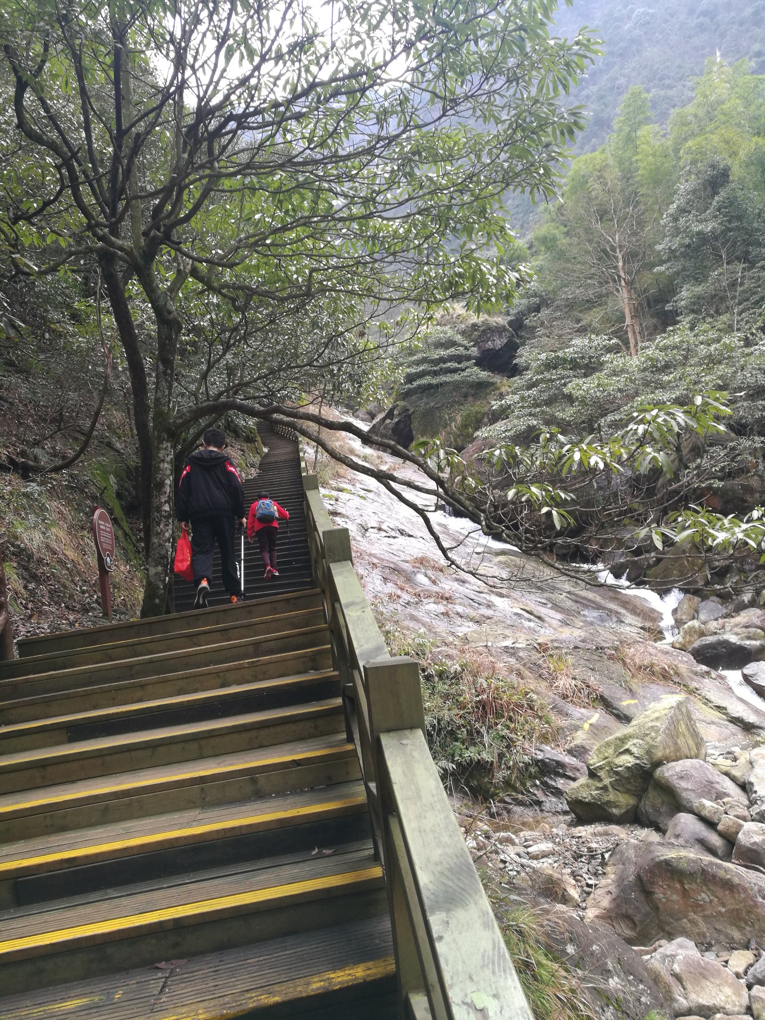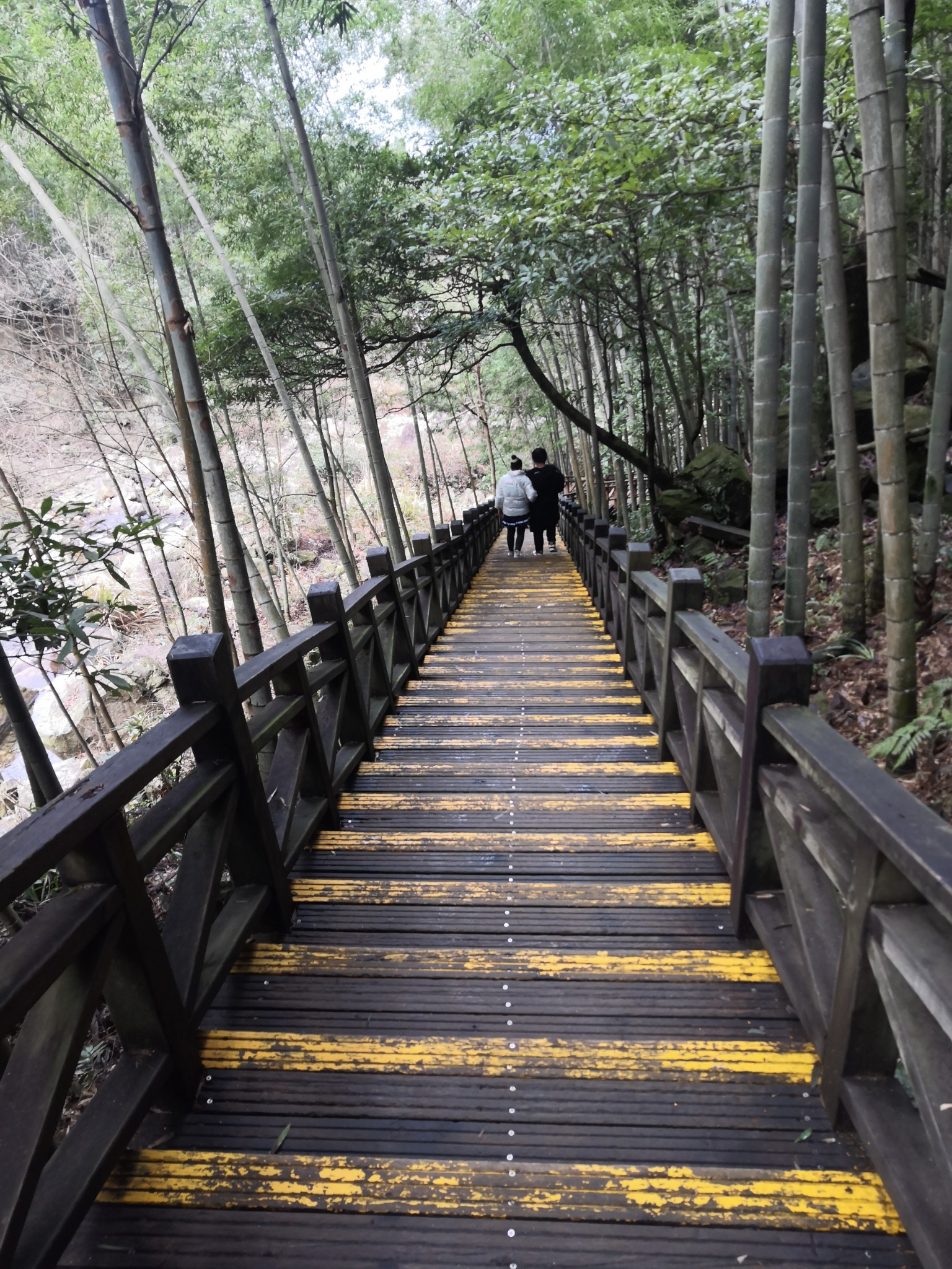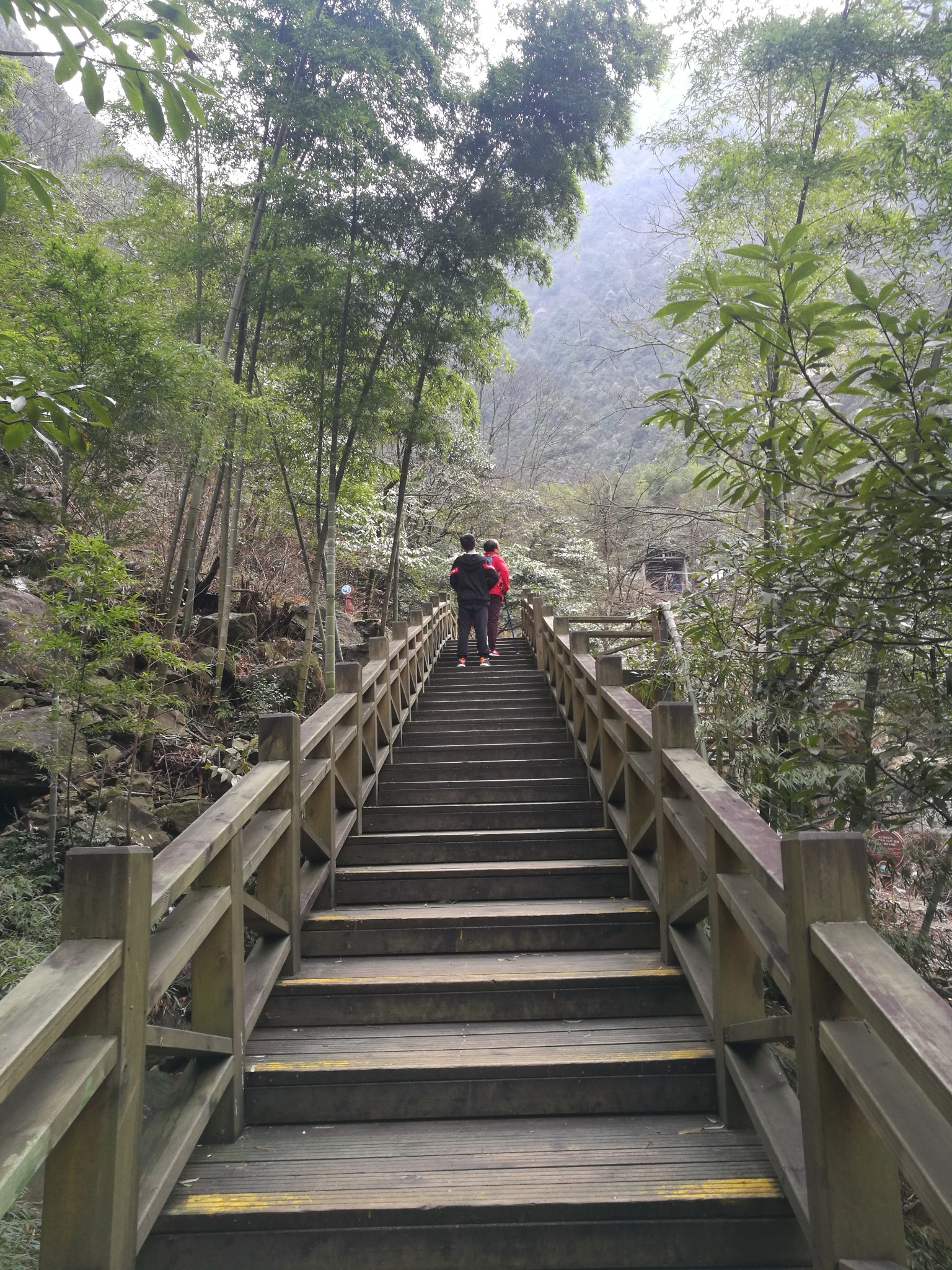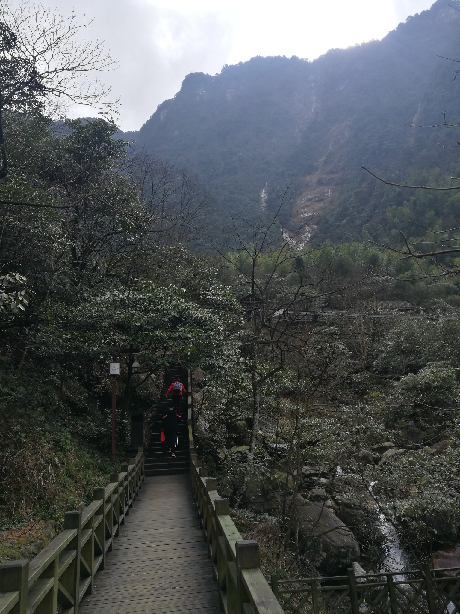走完石阶,就是一段木阶。走到晃月桥处(晃月桥在维修),我们选择继续直行沿木阶上山,没有走右侧石阶上山。
