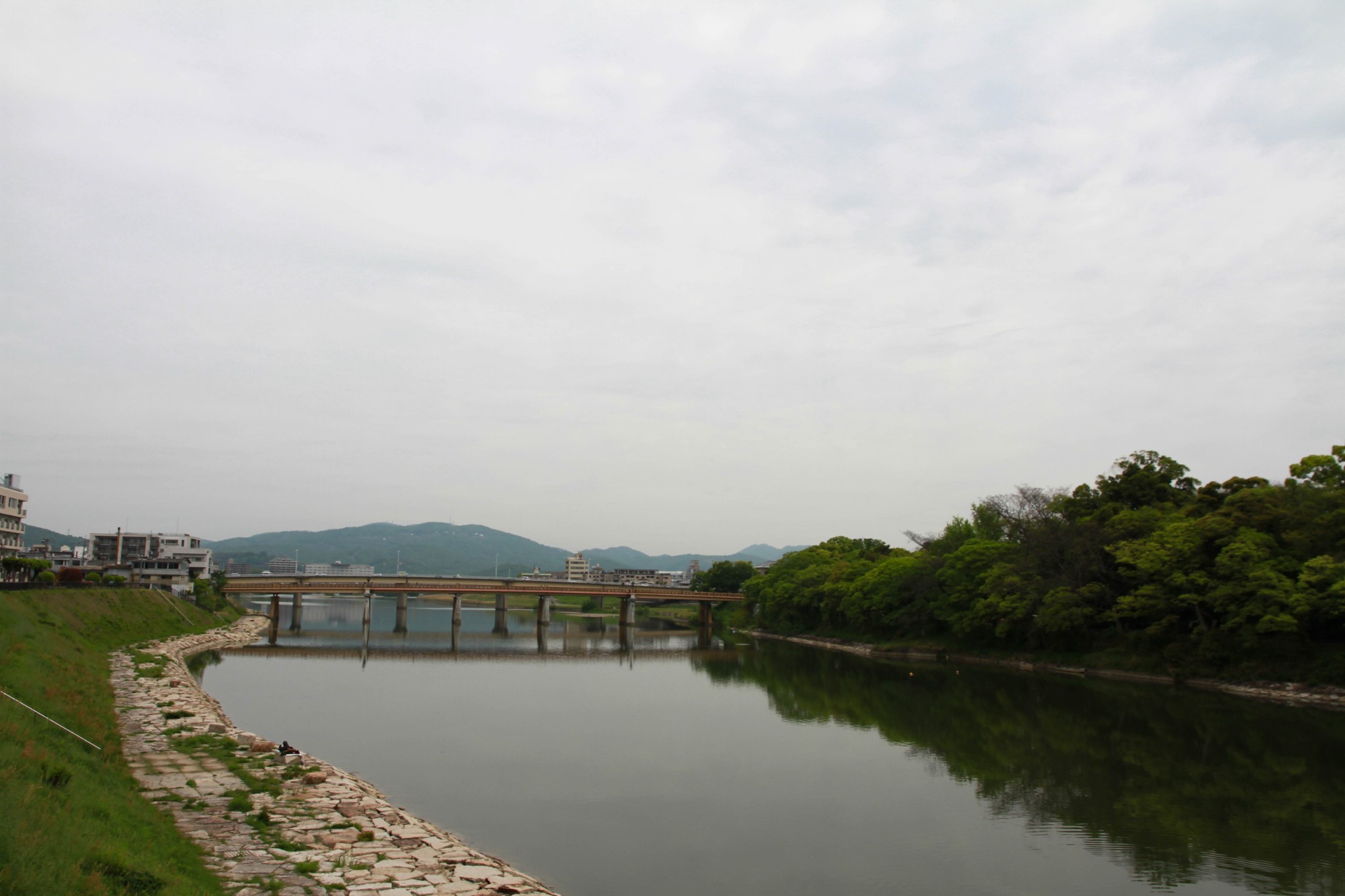 从东京到冈山好像不到3个小时,这时候已经快中午了,天气还是这样阴沉沉的,虽然没有下雨,不过远景还是模模糊糊的,这就导致了后面的濑户大桥效果明显降低。