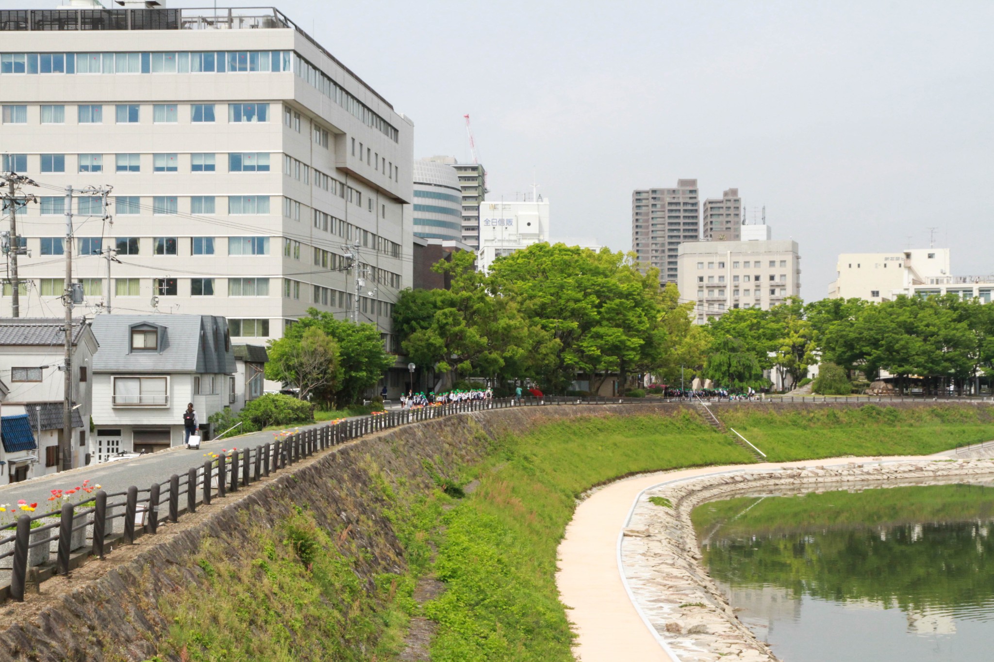过了这个钢架桥,基本上就到冈山城了。钢架桥的另外一面就是后乐园了。