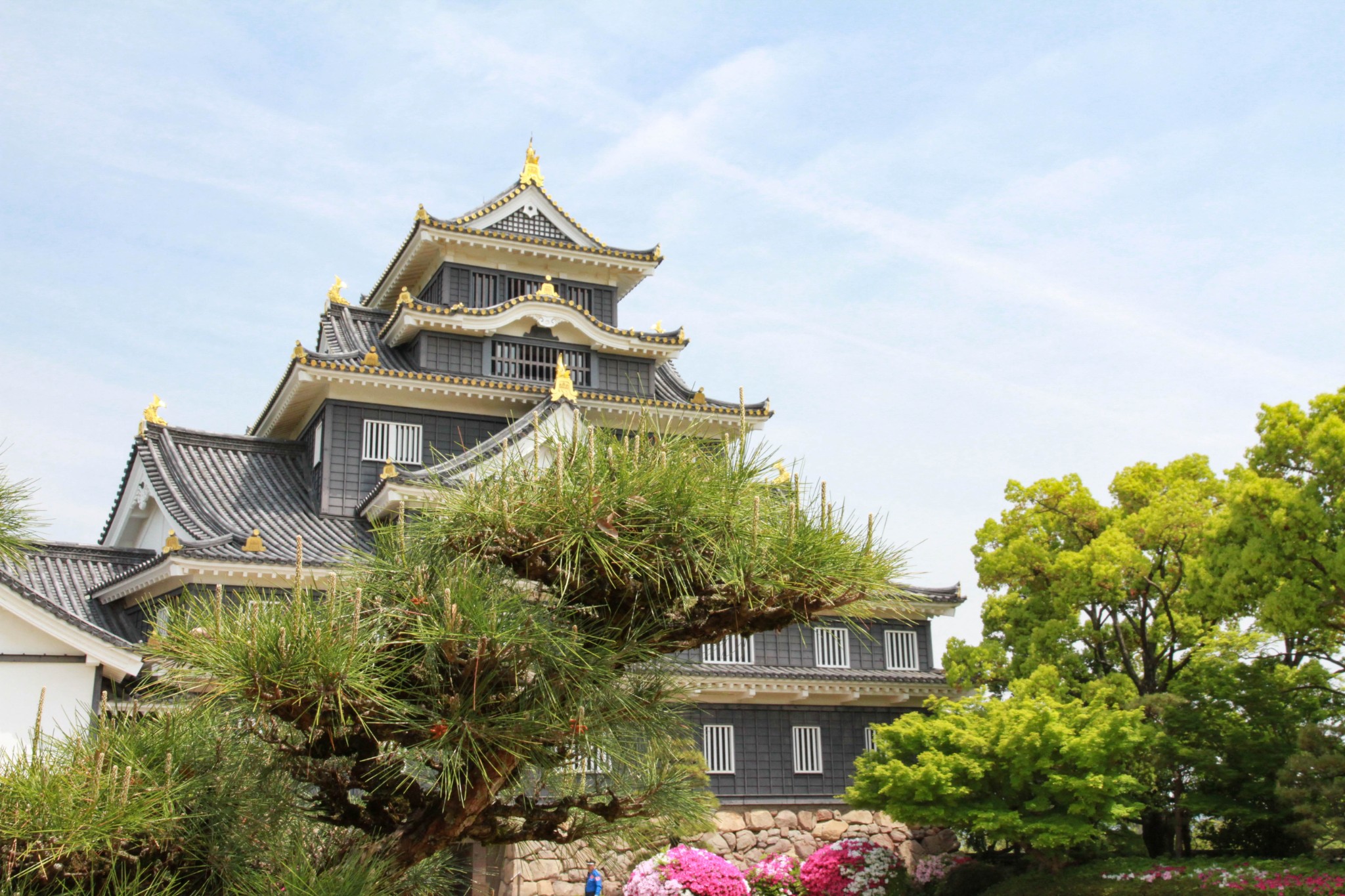 冈山城不算大,不过特点比较明显,就是城体的颜色是黑色的,所以冈山城也被成为乌城或者金乌城。冈山城还是开放的,也是可以进城的,虽然需要额外的费用,不过一般都不会很贵。小一点的,没有特别知名度的城一般300日元,如果是大城,比较有名气的,可能是500日元。以冈山城为例,还是可以进城一下的,毕竟这里算是比较高的,登城之后可以看到整个后乐园的全景。冈山市能不能看全,不记得了。不妄下结论。