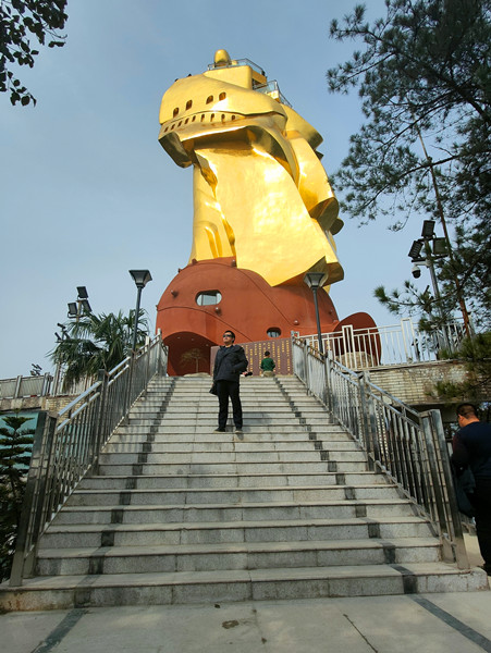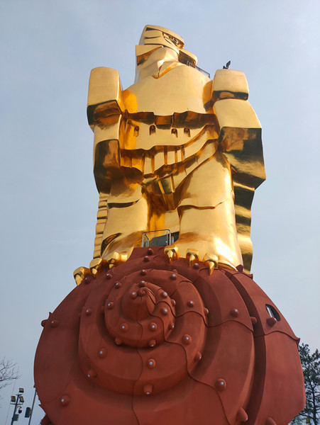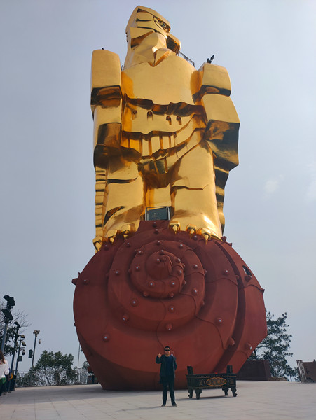 整座大金鹰雕塑由22米高的巨鹰和10米高的海螺组成,重千吨