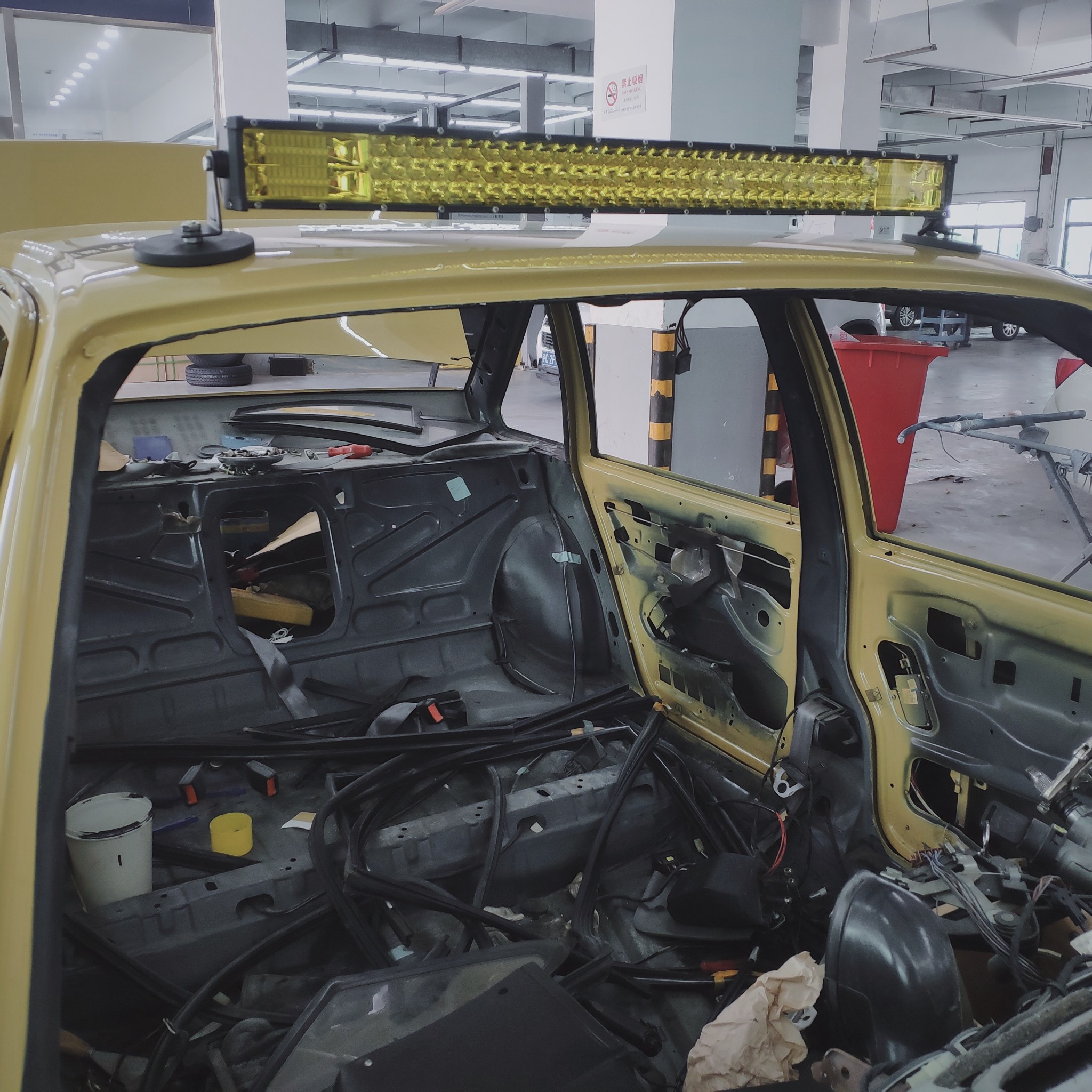 然而这些问题都不是修复过程中的最为严重的问题,在我们拆空车架,为整车重新喷漆的时候,磨掉漆面后我们才发现这是一台严重事故车。从右后面到C柱顶端再到右后轮拱,都有重新焊接的痕迹,而右后车灯又因为钣金不到位,变形生锈,难以检测到的漏水,导致后来行程中出现短路的灯光无法使用的隐患问题难以提前发现。