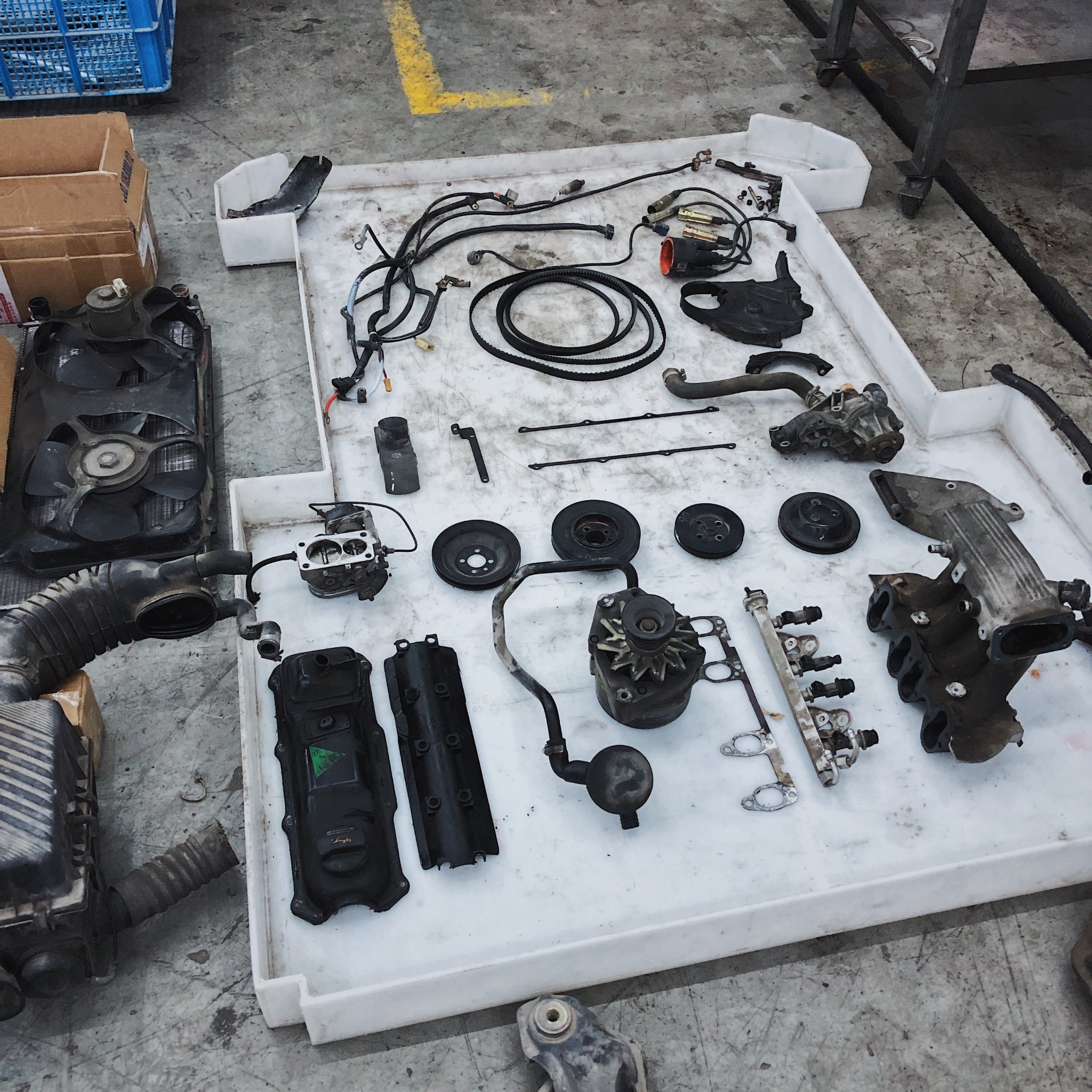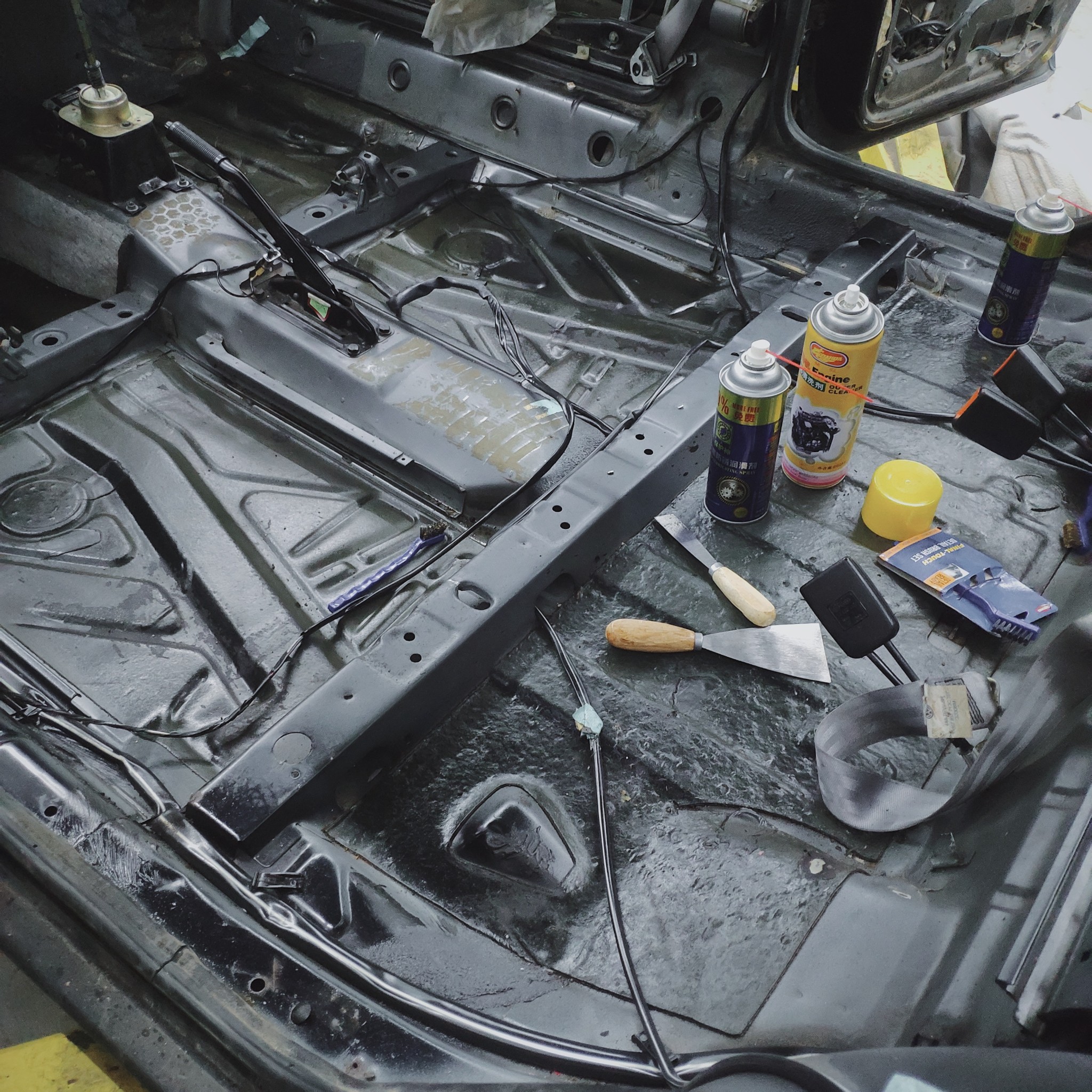 惊喜从办完过户手续送进厂的第一天开始,在拆解内饰的过程中,掀开地胶的瞬间,我们发现这是一台刚刚泡过水的车,但是因为普桑的简单机械结构,没有电控系统的落后,在这里反而变成了优点。