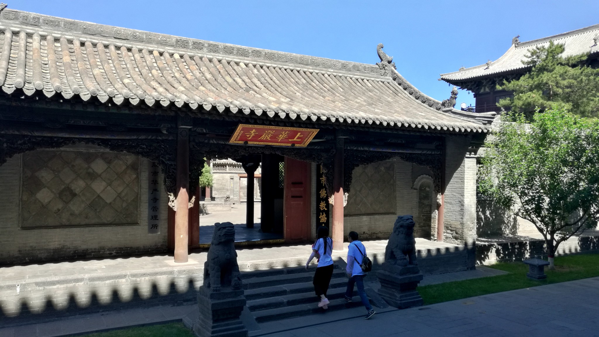 普光明殿后面,居然是又一道“上华严寺”大门,里边还有在中国民间是佛寺山门前的二金刚,“哼哈二将”,估计这里曾经是寺庙大门,后来扩建了,这里就成过殿了。