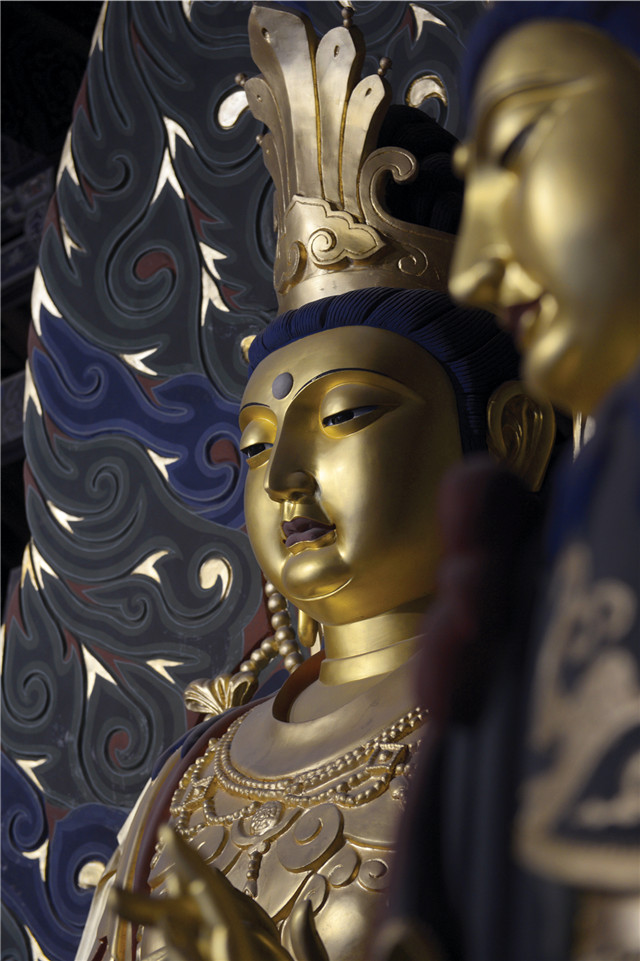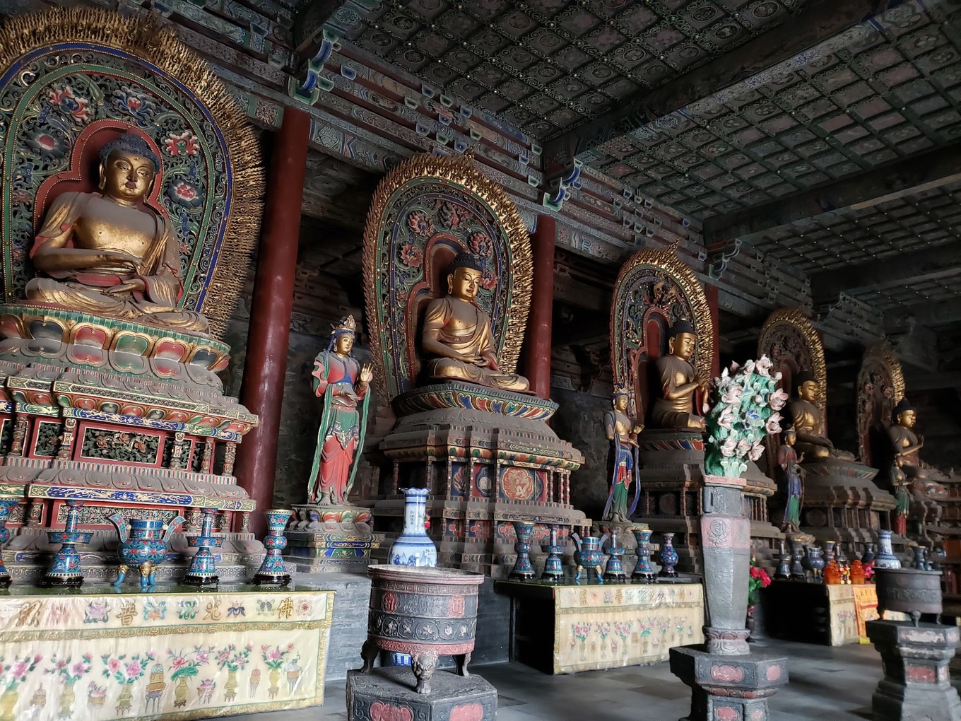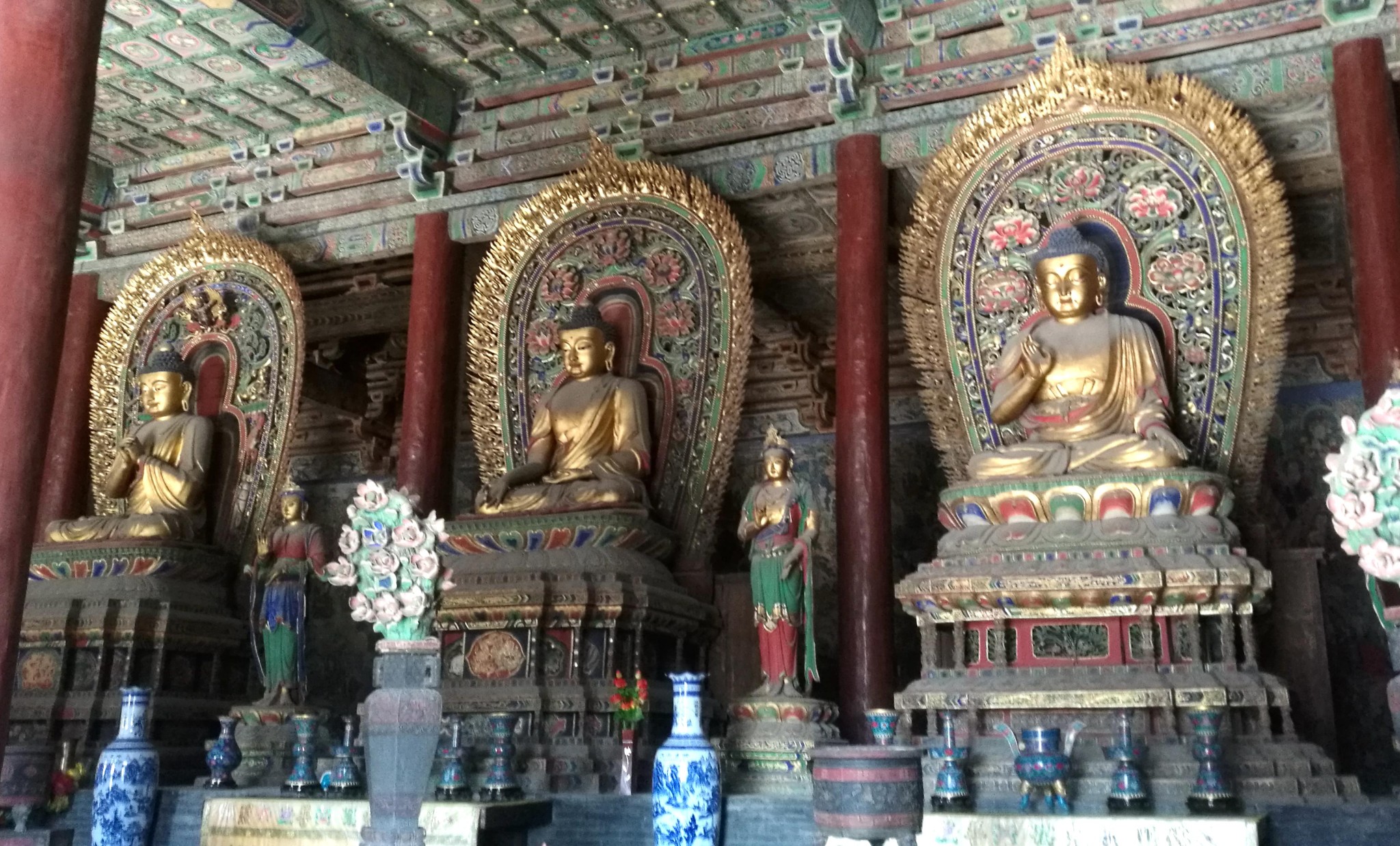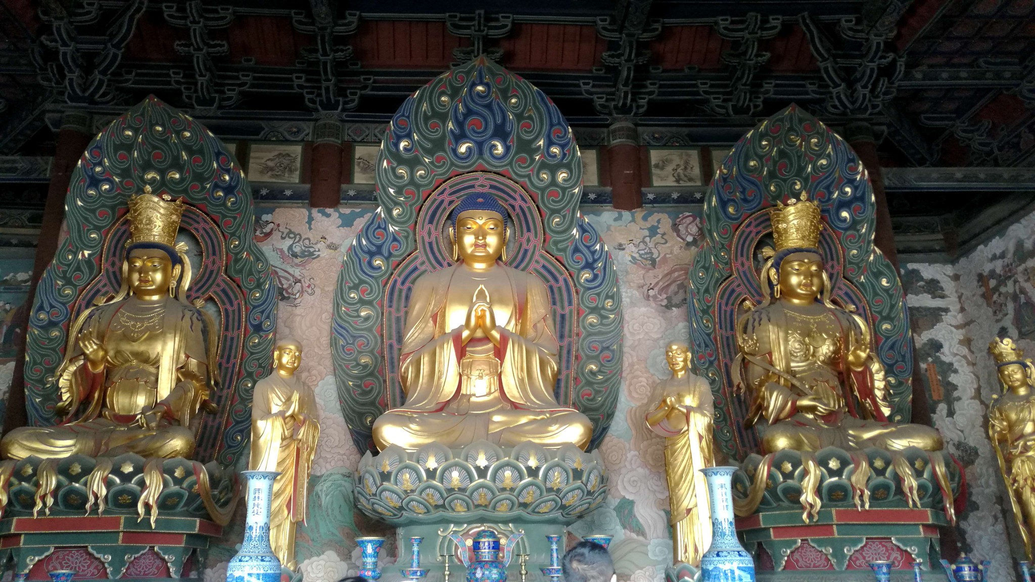殿内主供五方佛。意指东、西、南、北、中,他们各统治一方。中央三尊为明宣德二年(公元1427年)檀木所制,两侧两尊于明成化元年(公元1465年)泥塑而成。
