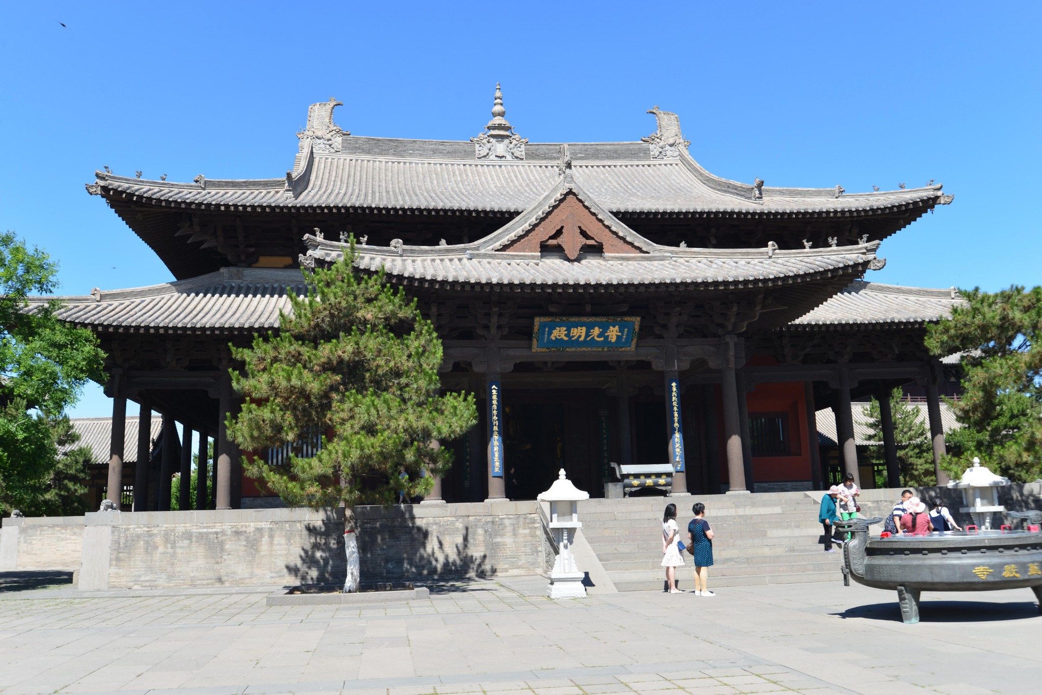 主殿大雄宝殿始建于辽清宁八年(公元1062年),金天眷三年(公元1140年)依旧址重修,面阔九间,单体建筑面积达1559平方米,是我国现存辽金时期最大的佛殿;