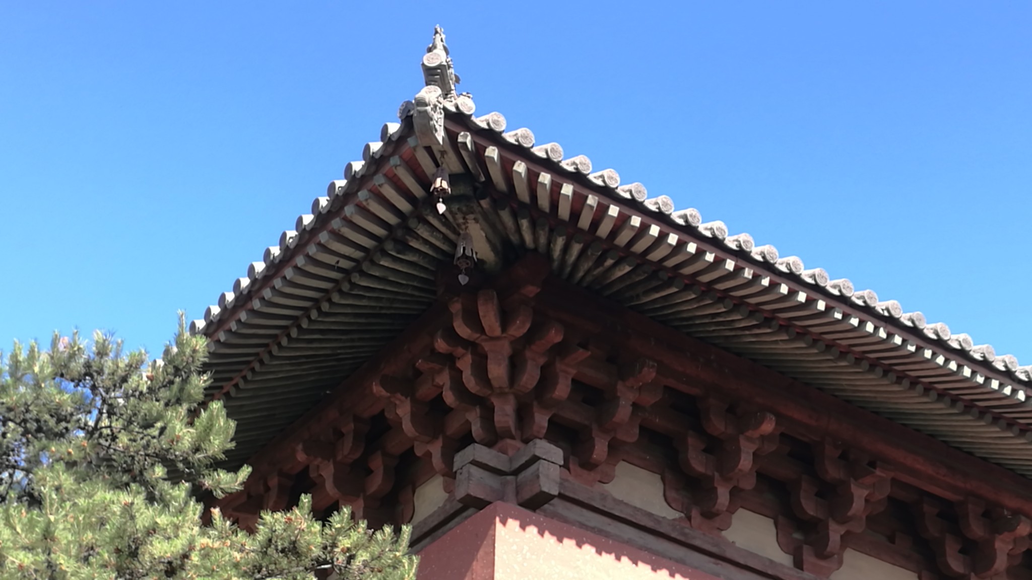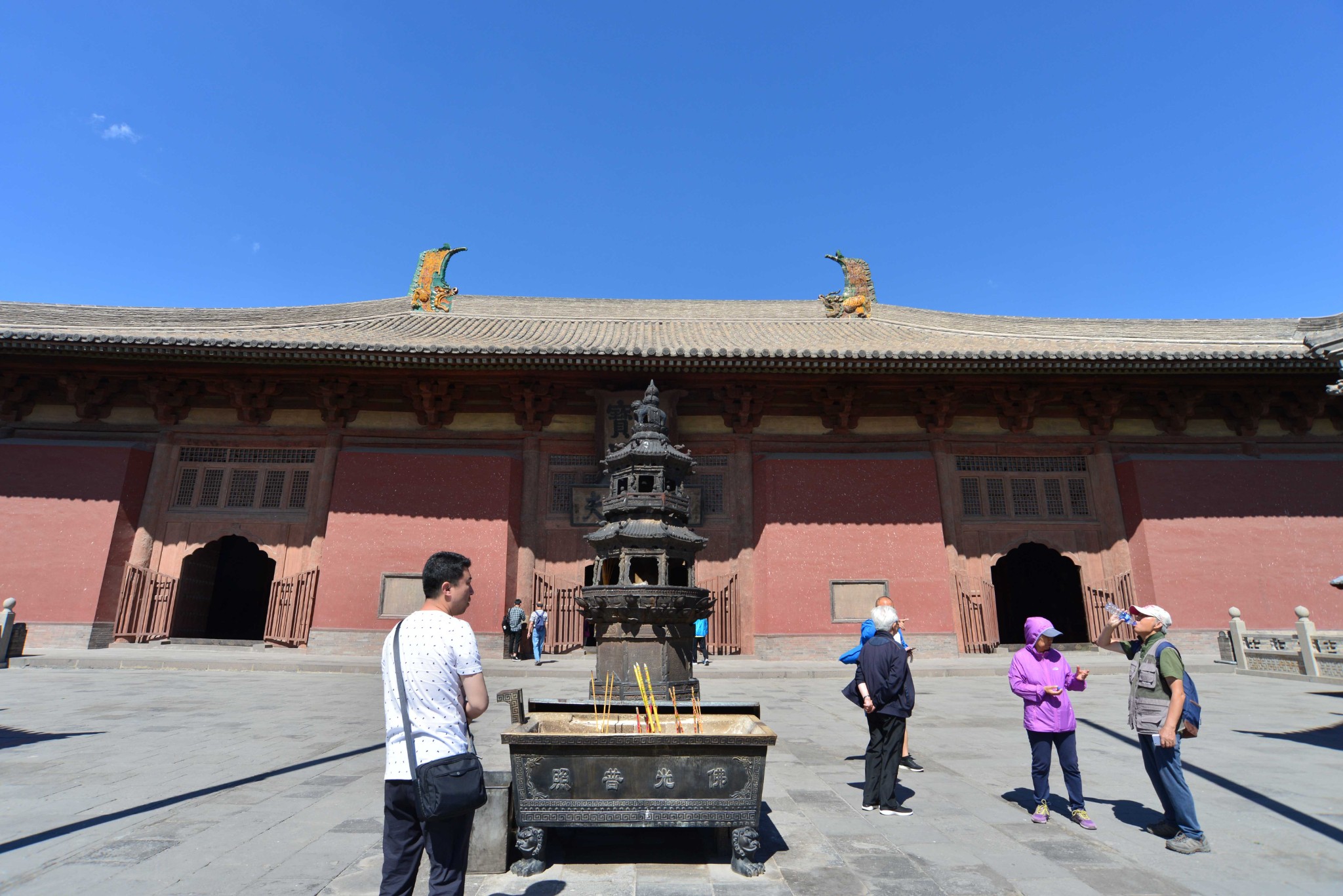 华严寺山门,高敞舒展,面阔五间,进深三间,上覆庑殿顶,尽显皇家气魄,殿中塑有四大天王像,也称天王殿。