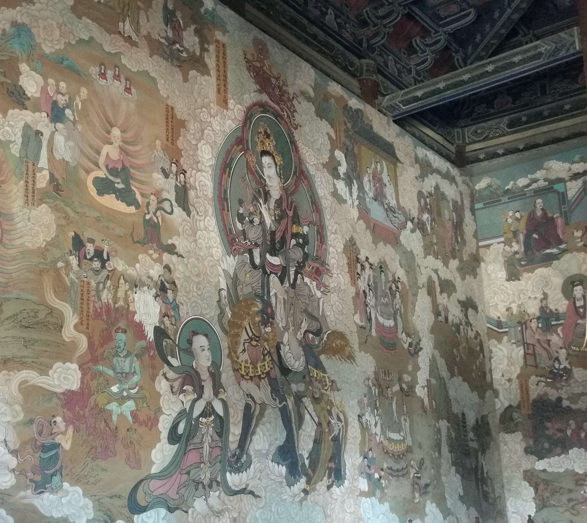 普光明殿中的壁画,2009年由北京中央美院著名教授和150多位师生历经三年完成。