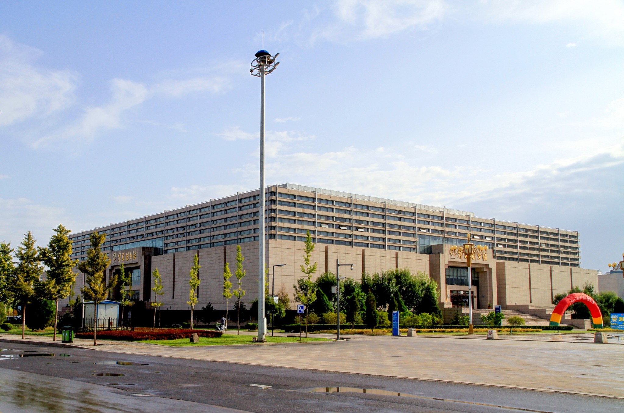 【银川国际会展中心】是自治区成立五十周年大庆(1958年10月25日,宁夏回族自治区成立)重要建设项目之一,2011年会议中心刚刚建成3年,还是一座崭新的建筑。