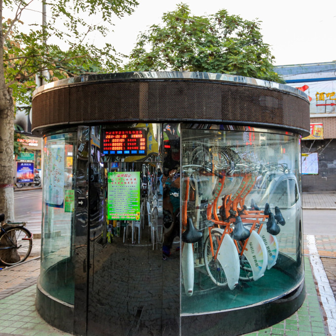 银川闹市中的【共享单车】,拍摄于2014年。