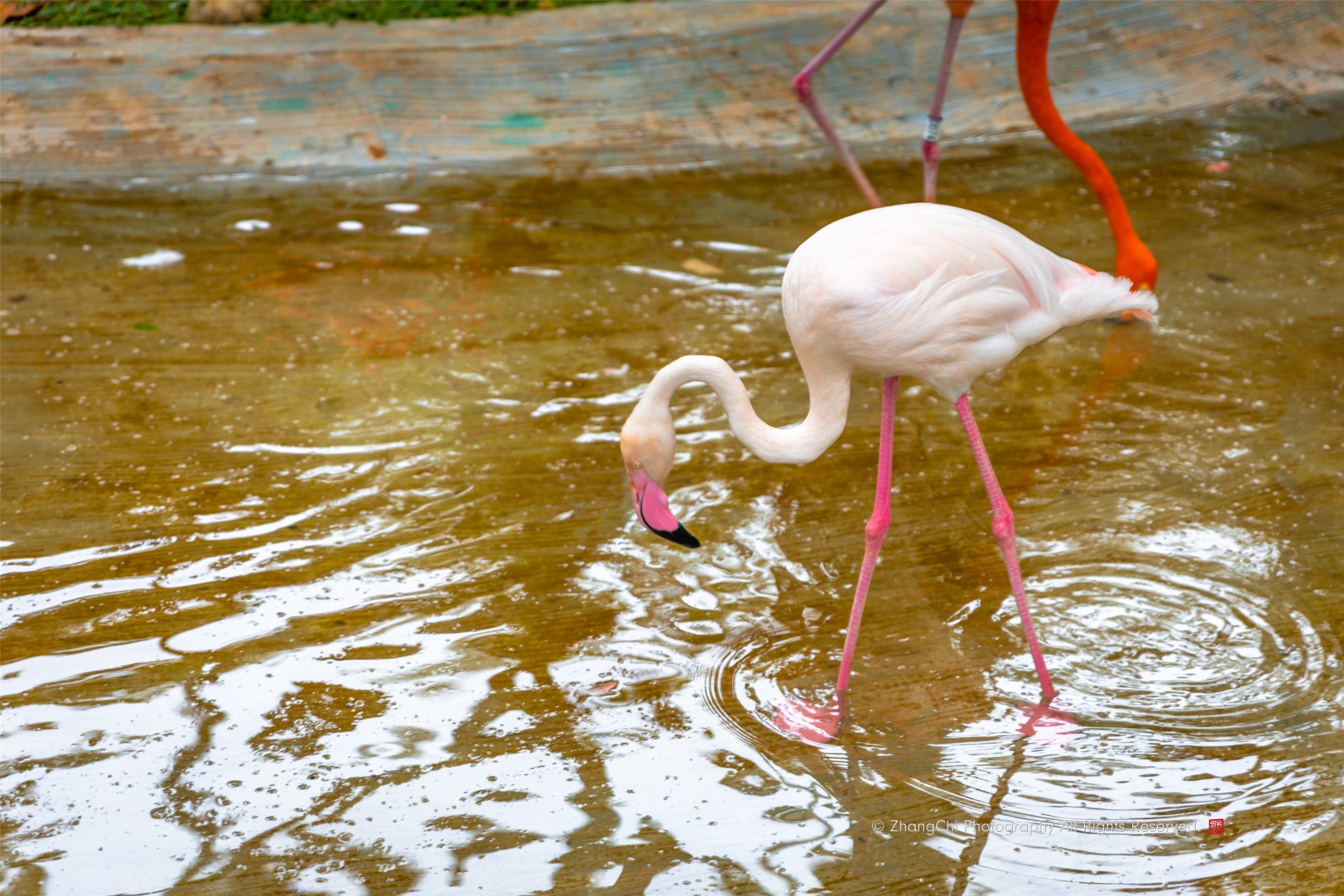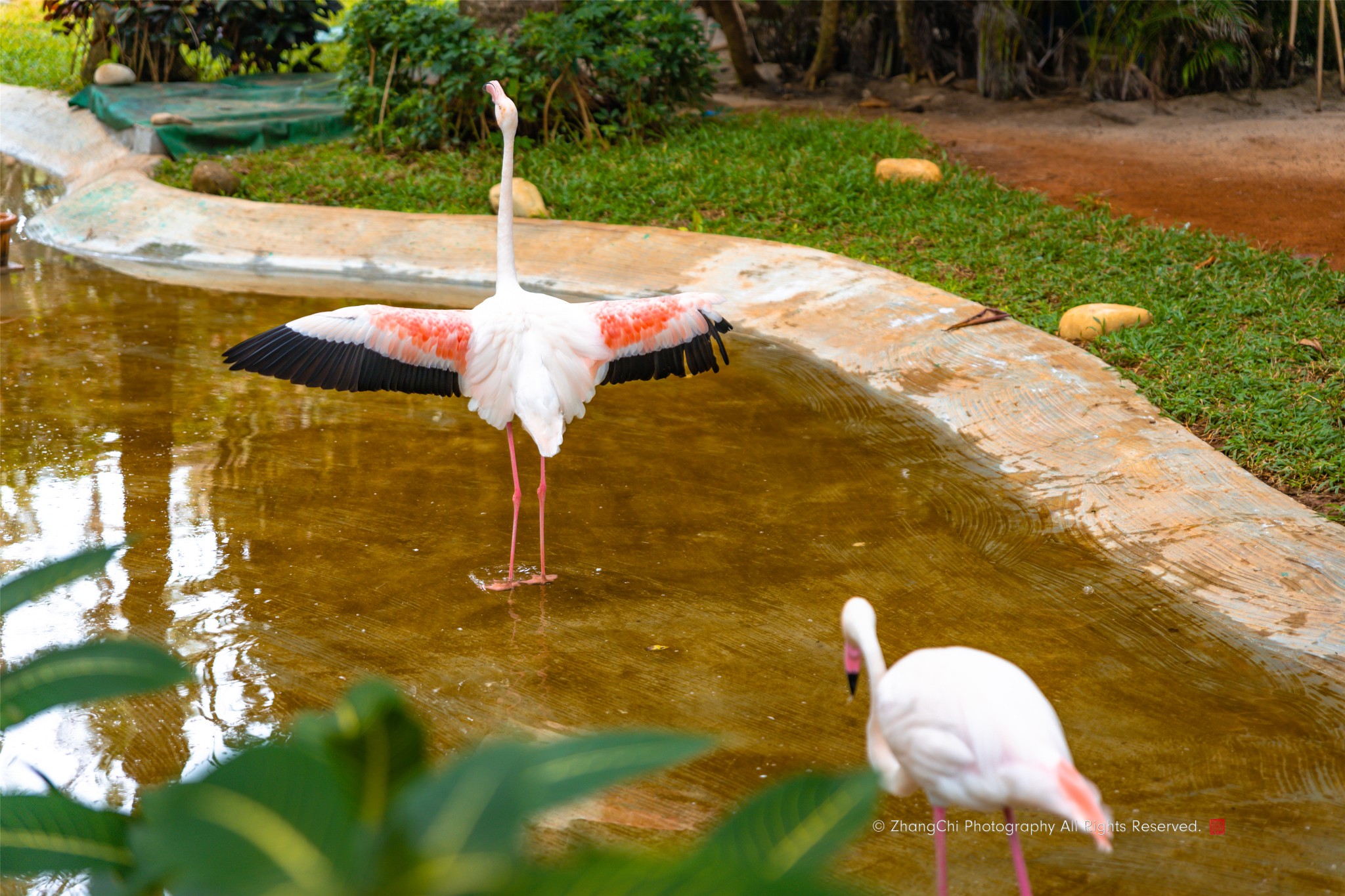 蜈支洲岛有一座小型动物园,火烈鸟惹人注目。