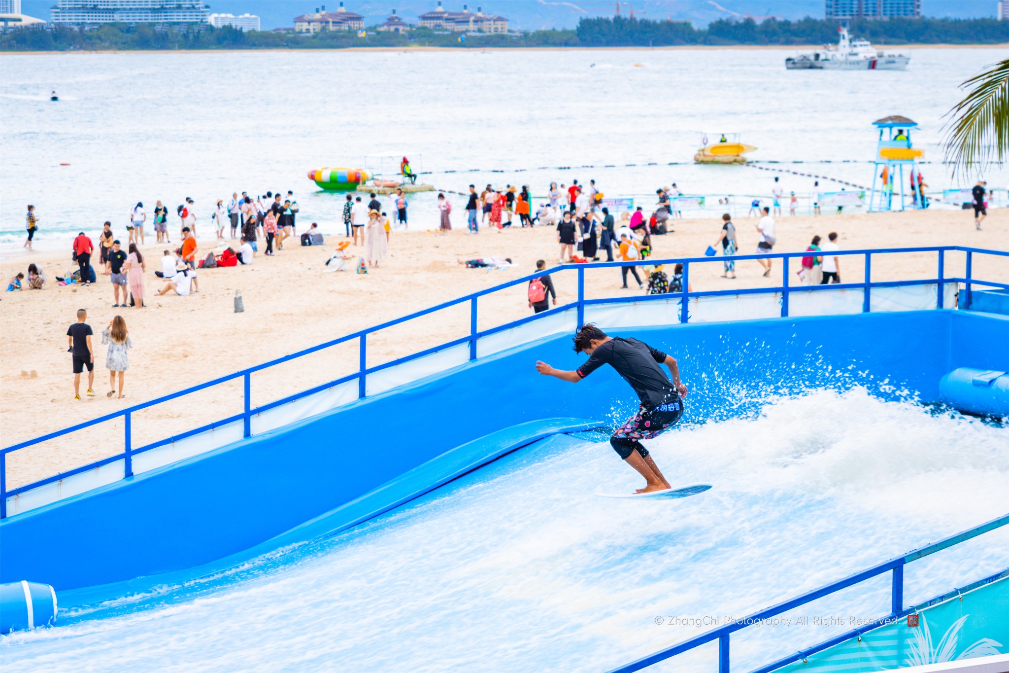 正是三亚国际电影节闭幕式当天,正巧遇上了著名导演管虎的团队来到蜈支洲岛团建,他们都带着印有电影《八佰》LOGO的帽子,管虎导演并没有参与其中的活动,而是惬意的躺在沙滩椅上享受时光,非常低调。我记忆中2020年没去过几次电影院,而管虎导演的《八佰》和《金刚川》我都是在影院里看的。