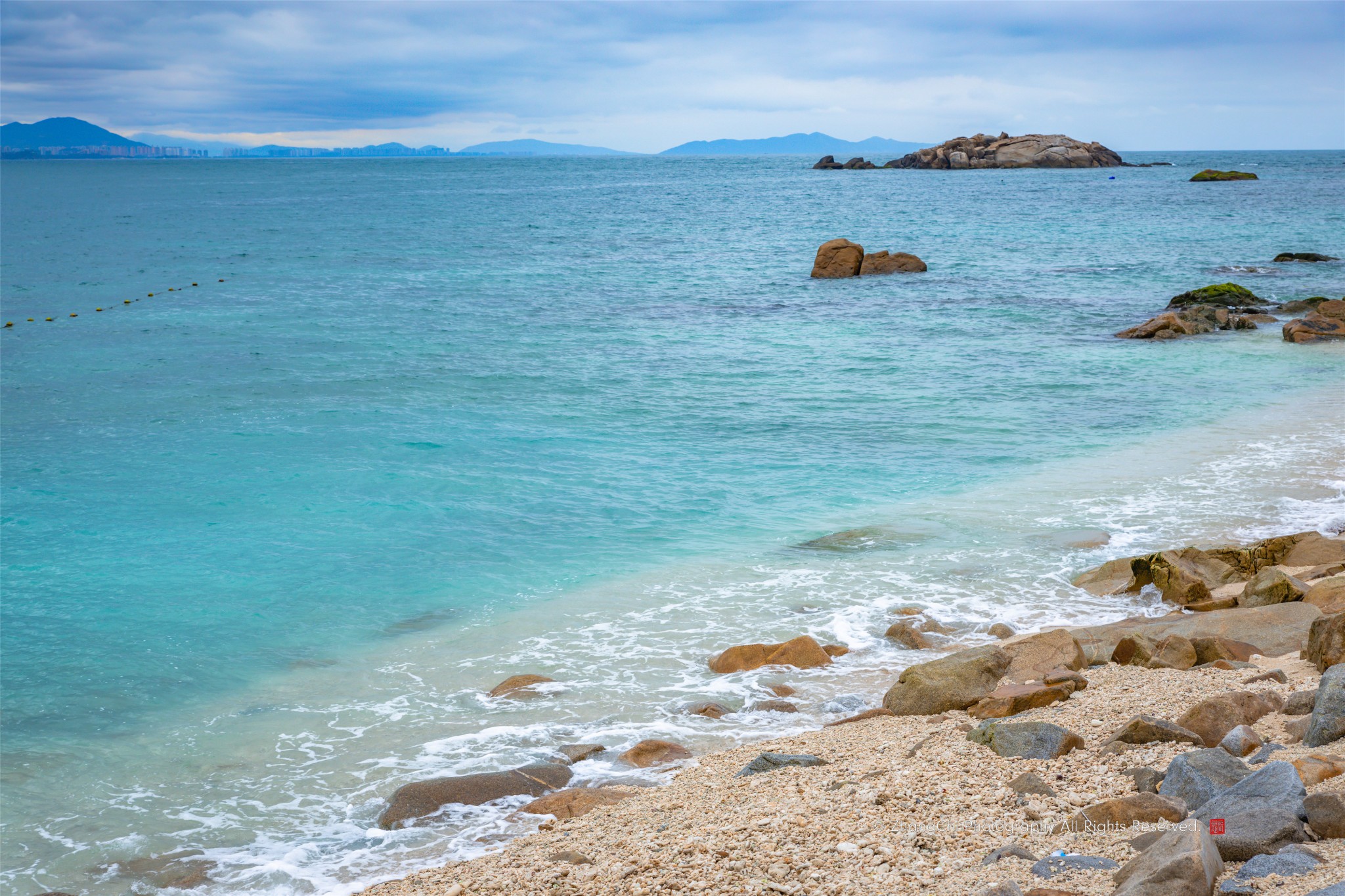 可惜天公不作美,如果是晴天的话,这片珊瑚礁会显得更加清澈碧蓝,曾经由于环境污染和过度捕捞,这片珊瑚礁生态系统遭到了严重破坏,经过科研专家的不懈努力,珊瑚礁修复后重获生机,蜈支洲岛的潜水项目才有了看点。
