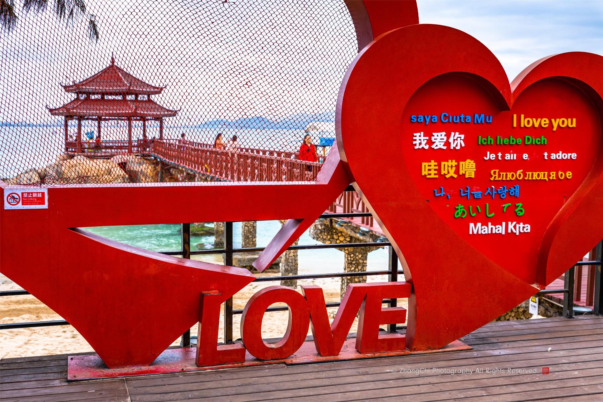 最有名的情人桥也是《私人订制》的取景地,入口处情侣接吻的雕塑仿佛就宣示着走上桥便会坠入爱河,在这里打卡的情侣也趋之若鹜。其实这座桥原先是通往驻岛部队的海上瞭望台的铁索桥,开发景区后,因为铁索桥比较晃动,所以小姐姐上桥要握紧伴侣的手,情人桥的美名便由此而来。